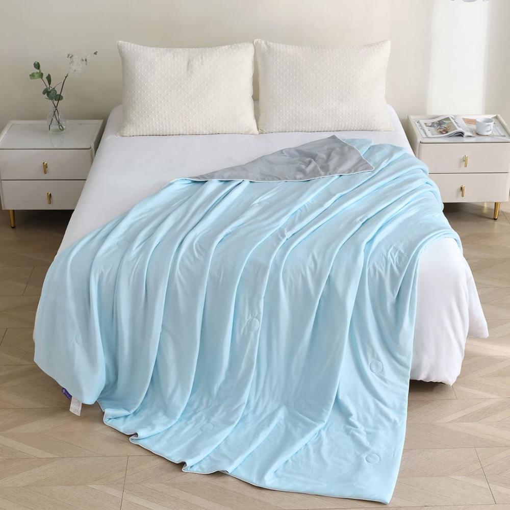 بطانية ايغلو الباردة مع تقنية تبريد مذهلة ودائمة - مقاس مفرد ونص - سماوي - رمادي