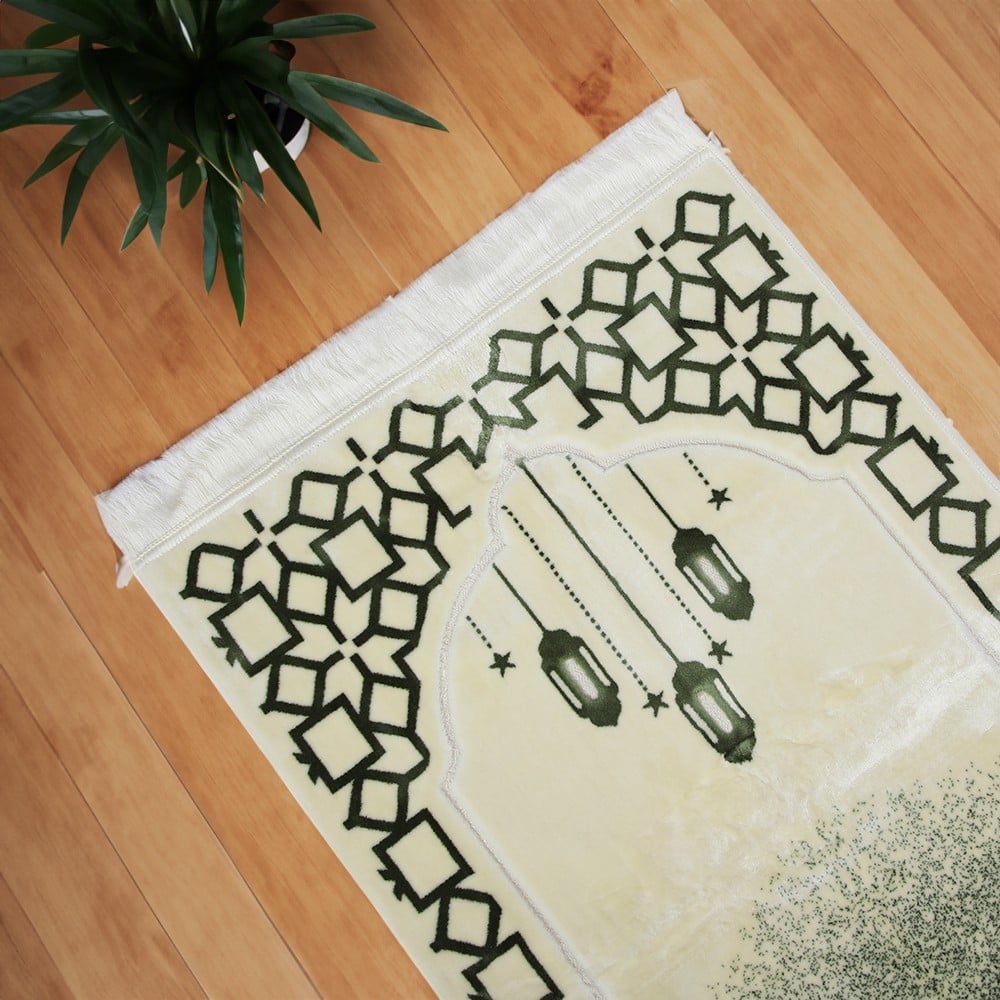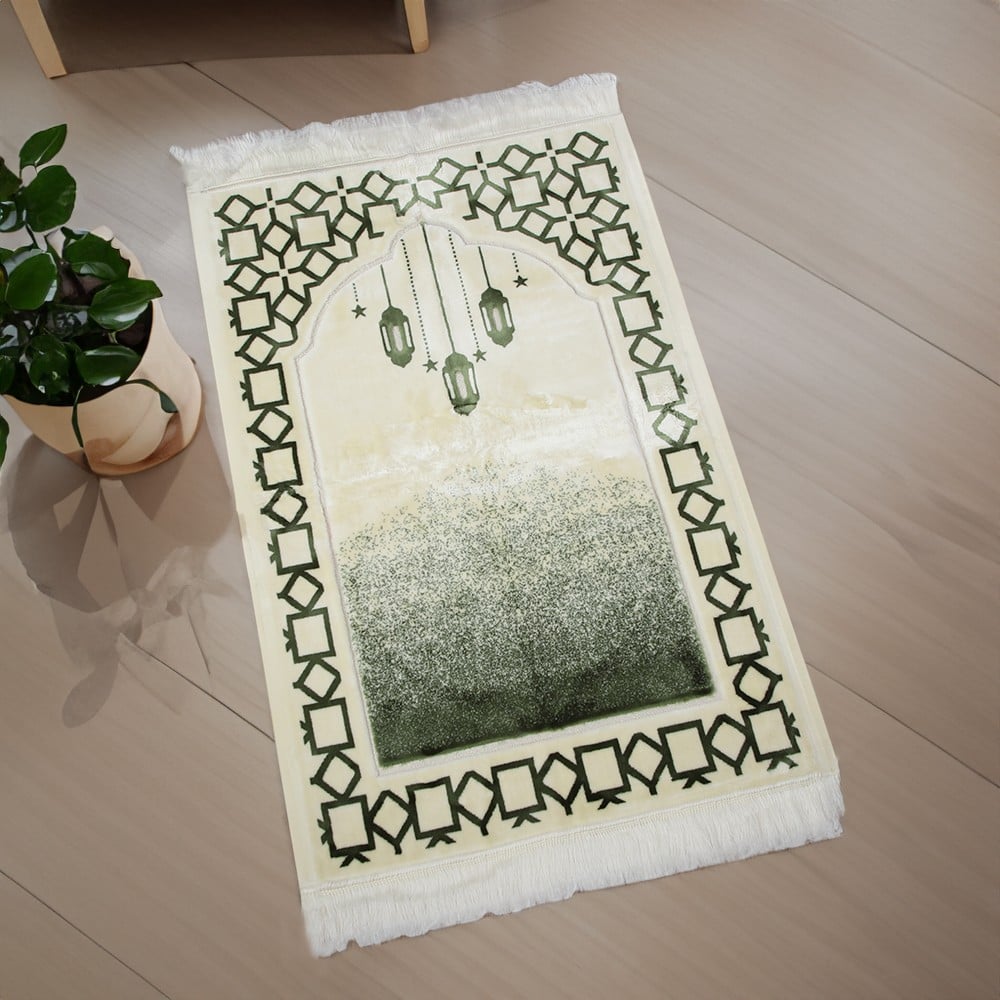سجادة صلاة حرير اكريلك تركي - اخلاص - كريمي - أخضر