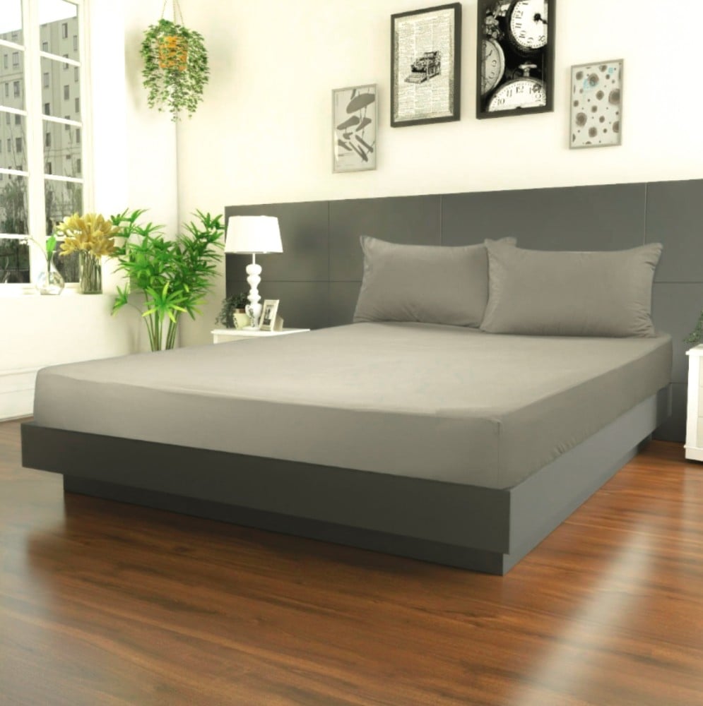 شرشف قطن مقاس كوين 3 قطع -رمادي