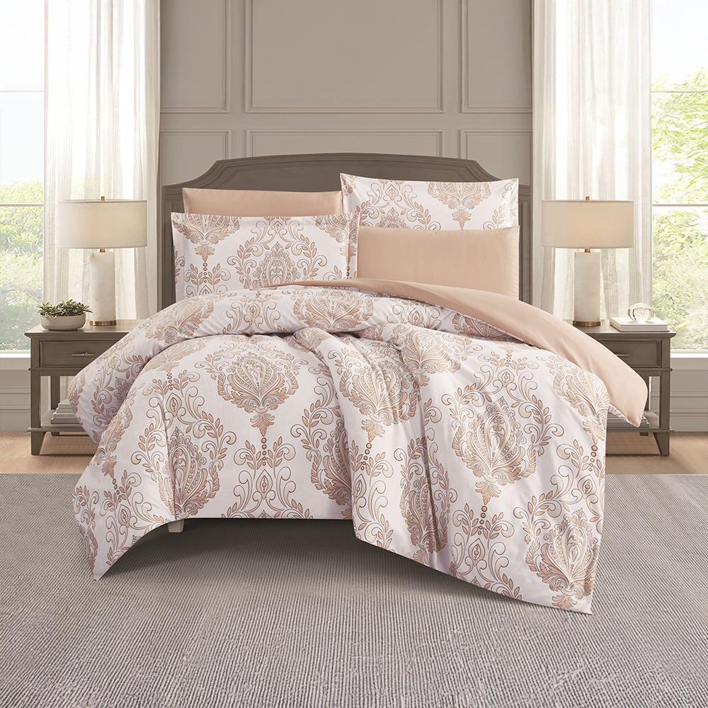 طقم بيت لحاف بدون حشوة مزدوج 6 قطع - امالينا - كريمي - بيج