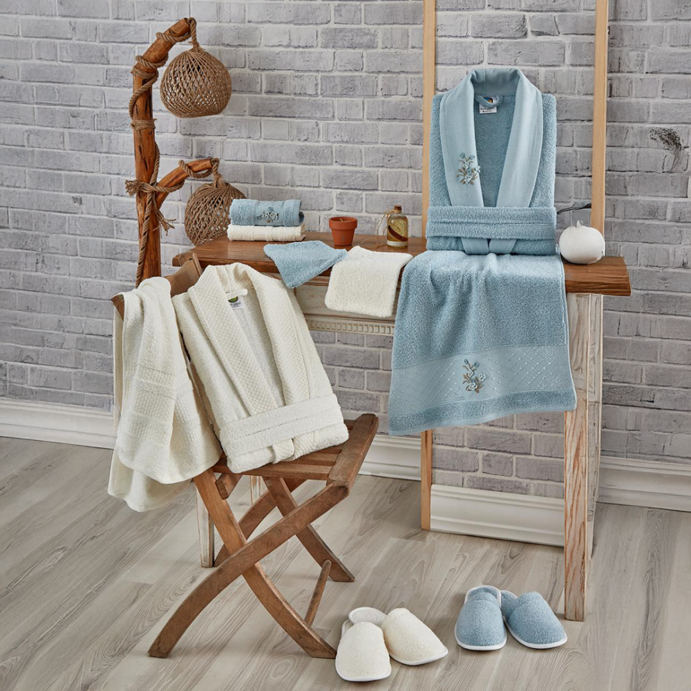 طقم روب استحمام قطن 12 قطعة مطرز - جوزفين - سماوي - سكري