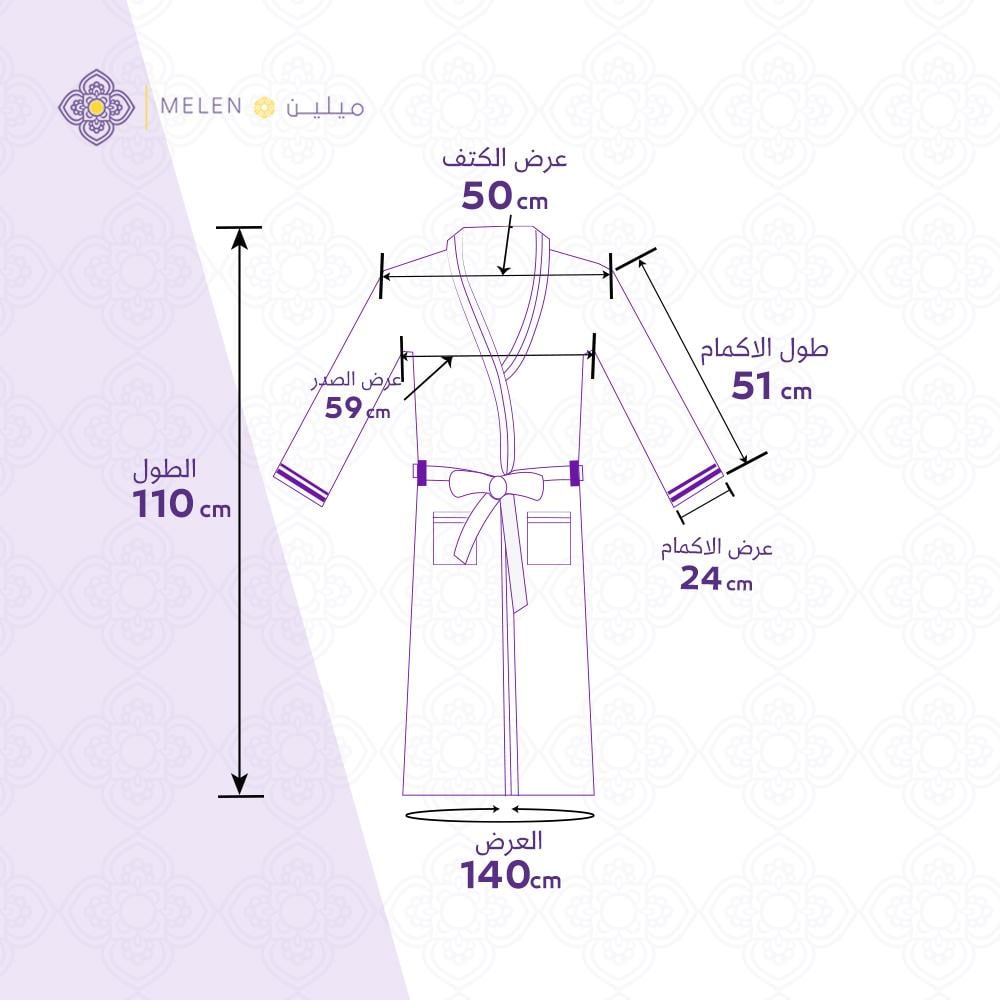 الطول : 110 سم عرض الصدر : 59 سم عرض الكتف : 50 سم