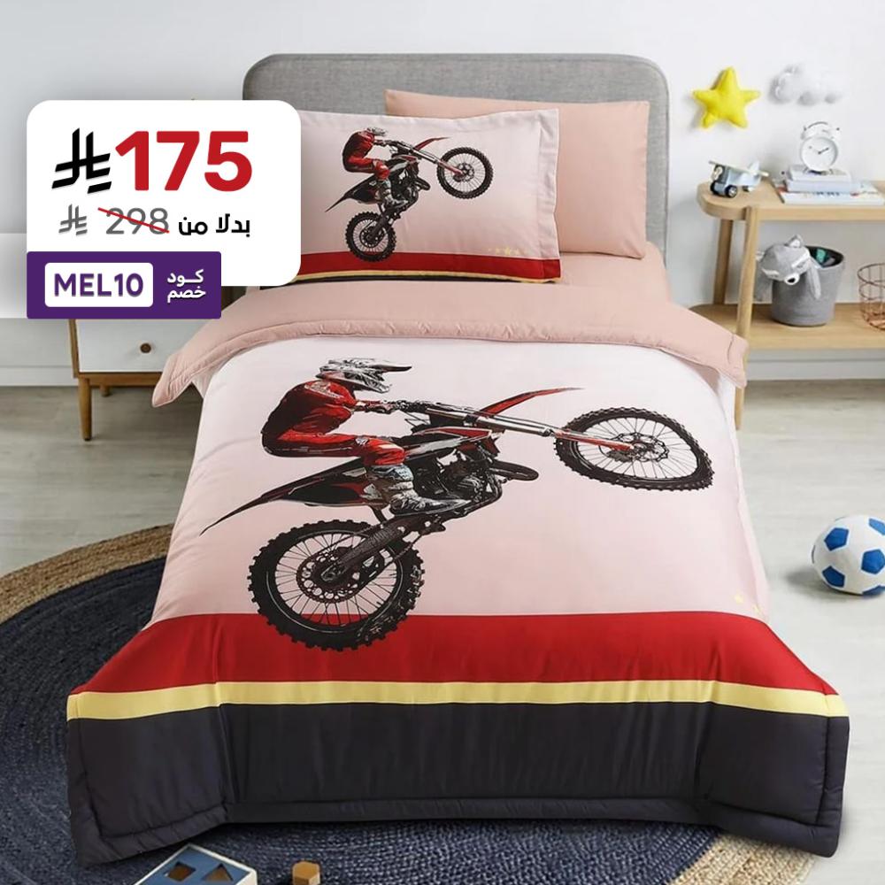 مفرش أطفال صيفي مفرد ونص 4 قطع - فابي - لحمي -أحمر - أسود