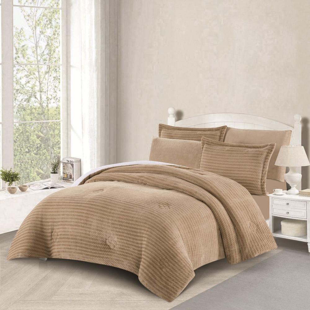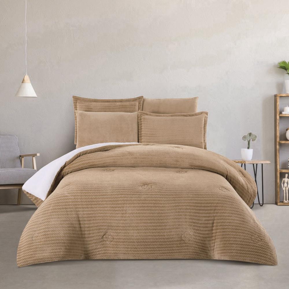مفرش شتوي مخمل فرو محفور مقاس كوين 6 قطع - سيلينيا - بني