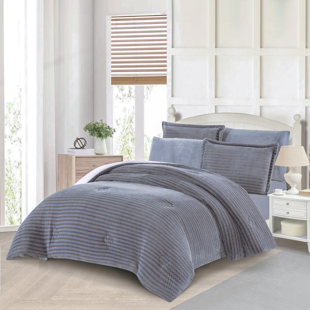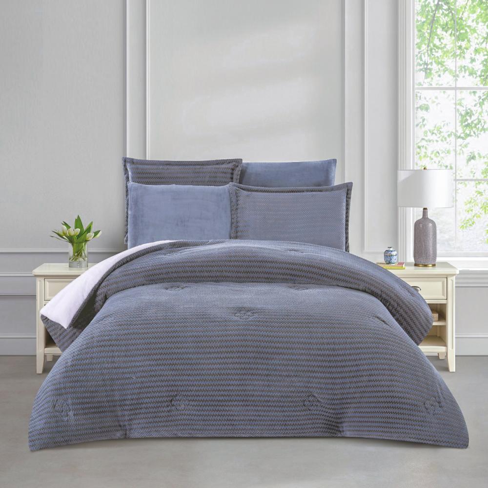 مفرش شتوي مخمل فرو محفور مقاس كوين 6 قطع - سيلينيا - رمادي غامق