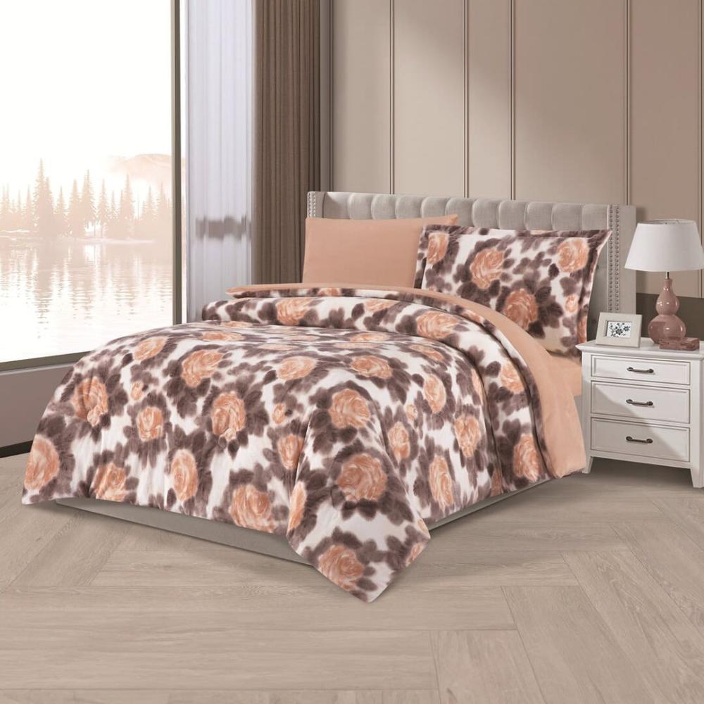 مفرش شتوي مخمل مفرد ونص 4 قطع - تالورا - بني غامق - بيج