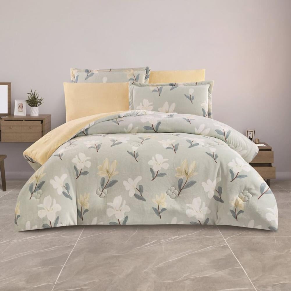 مفرش شتوي مخمل مقاس كوين 6 قطع - اودري - رصاصي - أصفر
