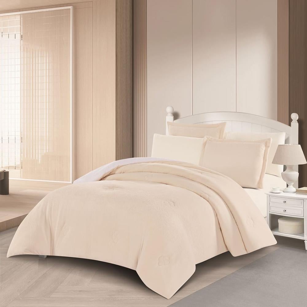 مفرش شتوي مزدوج مخمل فرو محفور 6 قطع - فيرون - كريمي
