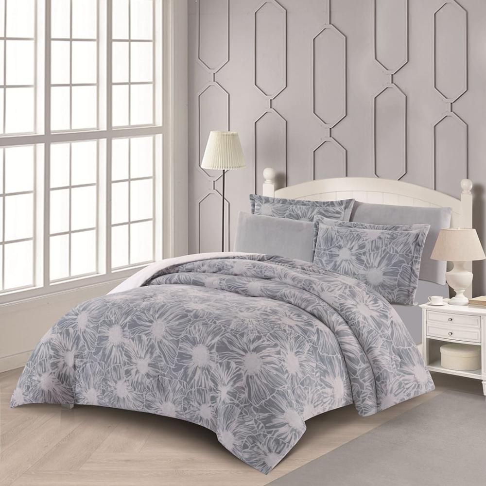 مفرش شتوي مزدوج مخمل فرو 6 قطع -نيكولينا - رمادي