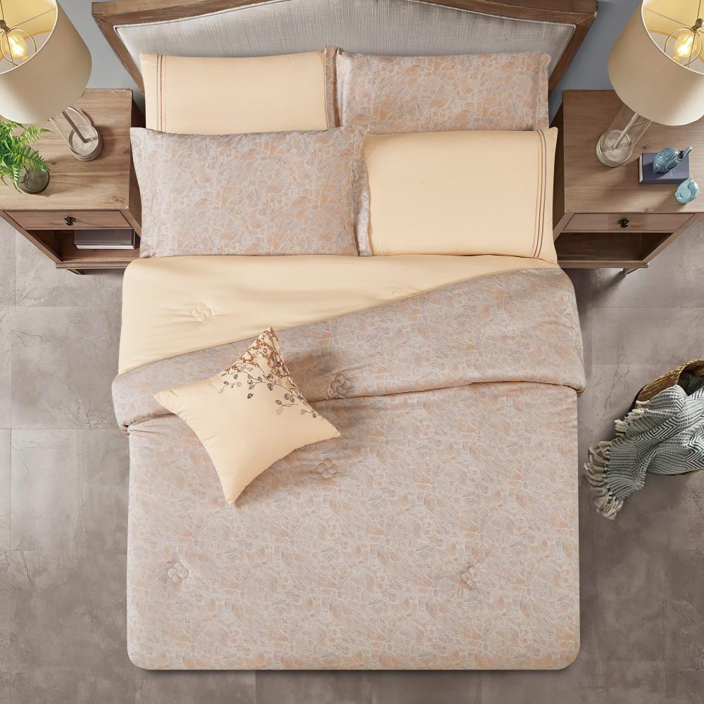 مفرش صيفي تنسيل قطن300غرزة محاك بتقنية الجاكار مقاس كوين 8 قطع - كوريلان - بيج - كريمي