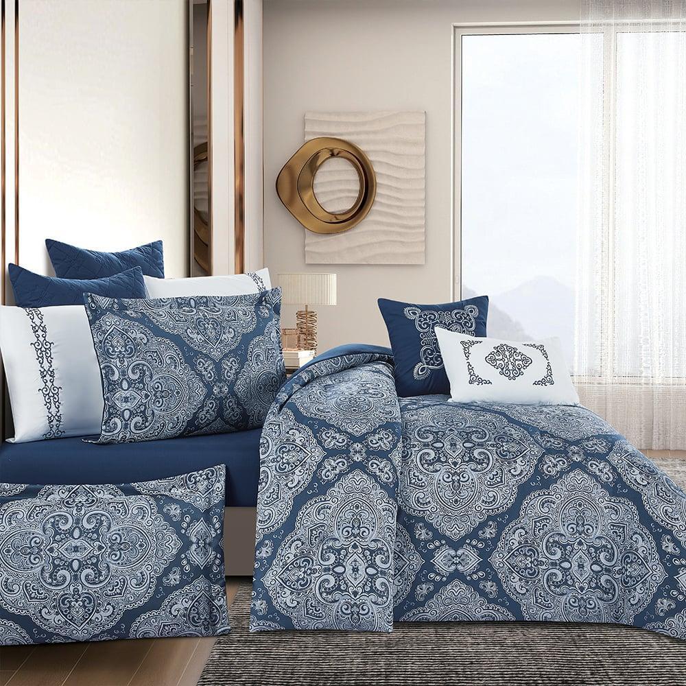 تم تصميم هذا المفرش من قماش الجاكار الفاخر بنقشة منسوجة بتصميم كلاسيكي هندسي، يجمع بين تفاصيل الروكوكو الفاخرة وتماثل زخرفي مستوحى من القصورالإيطالية تضفي طابعًا كلاسيكيًا دافئًا على غرفة نومك مع التطريز البارز اللذي يعطيك شعور الفخامة الملكية.