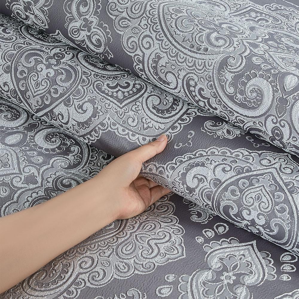 تم تصميم هذا المفرش من قماش الجاكار الفاخر بنقشة منسوجة بتصميم كلاسيكي هندسي، يجمع بين تفاصيل الروكوكو الفاخرة وتماثل زخرفي مستوحى من القصور الإيطالية تضفي طابعًا كلاسيكيًا دافئًا على غرفة نومك مع التطريز البارز اللذي يعطيك شعور الفخامة الملكية.
