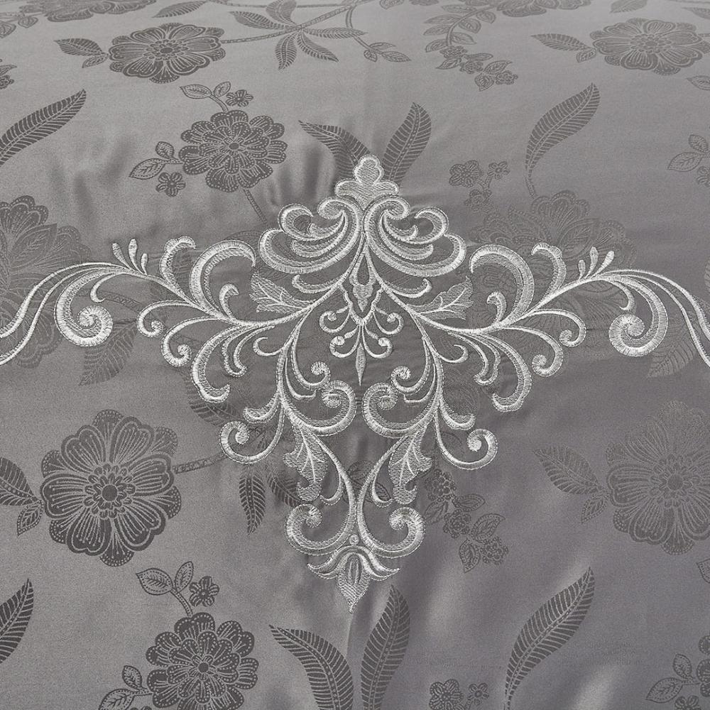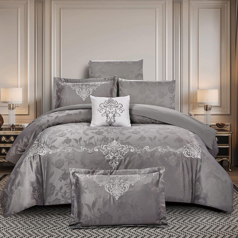 مفرش صيفي مزدوج جاكار مطرز 7 قطع - نيرفانا - رمادي