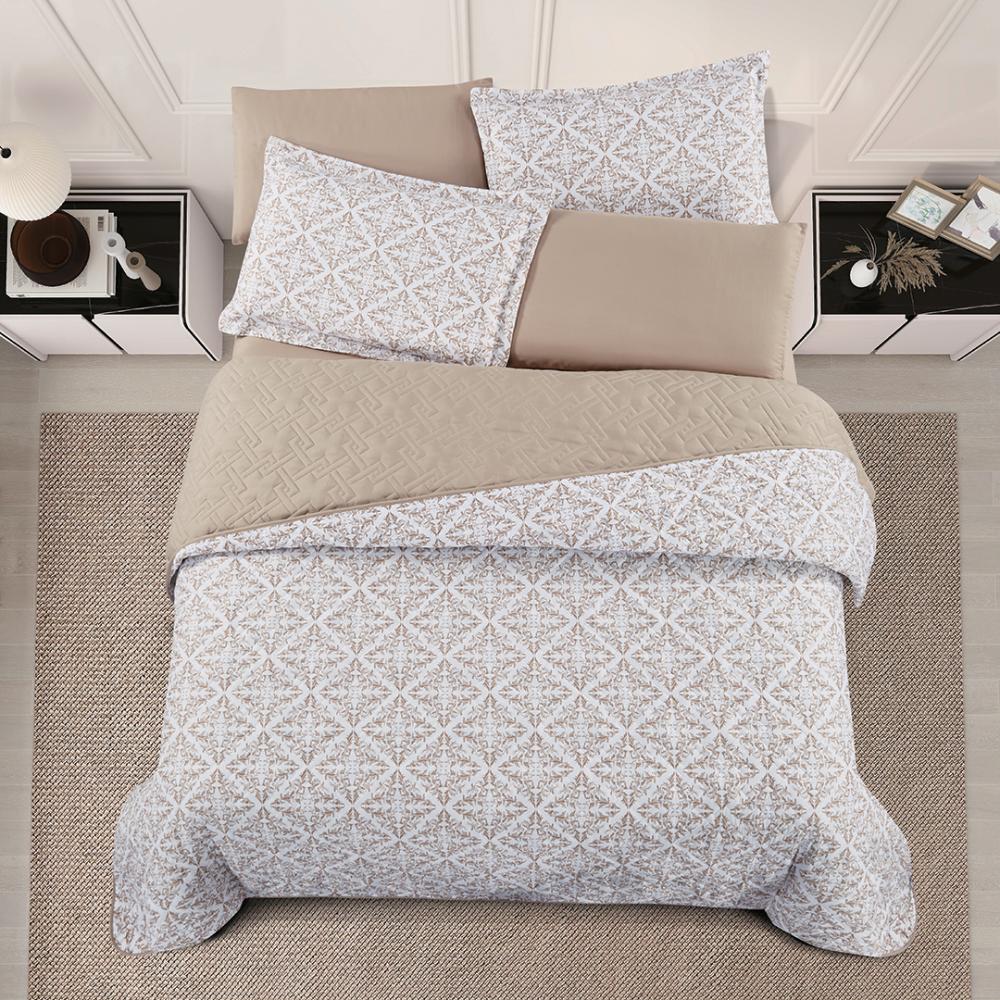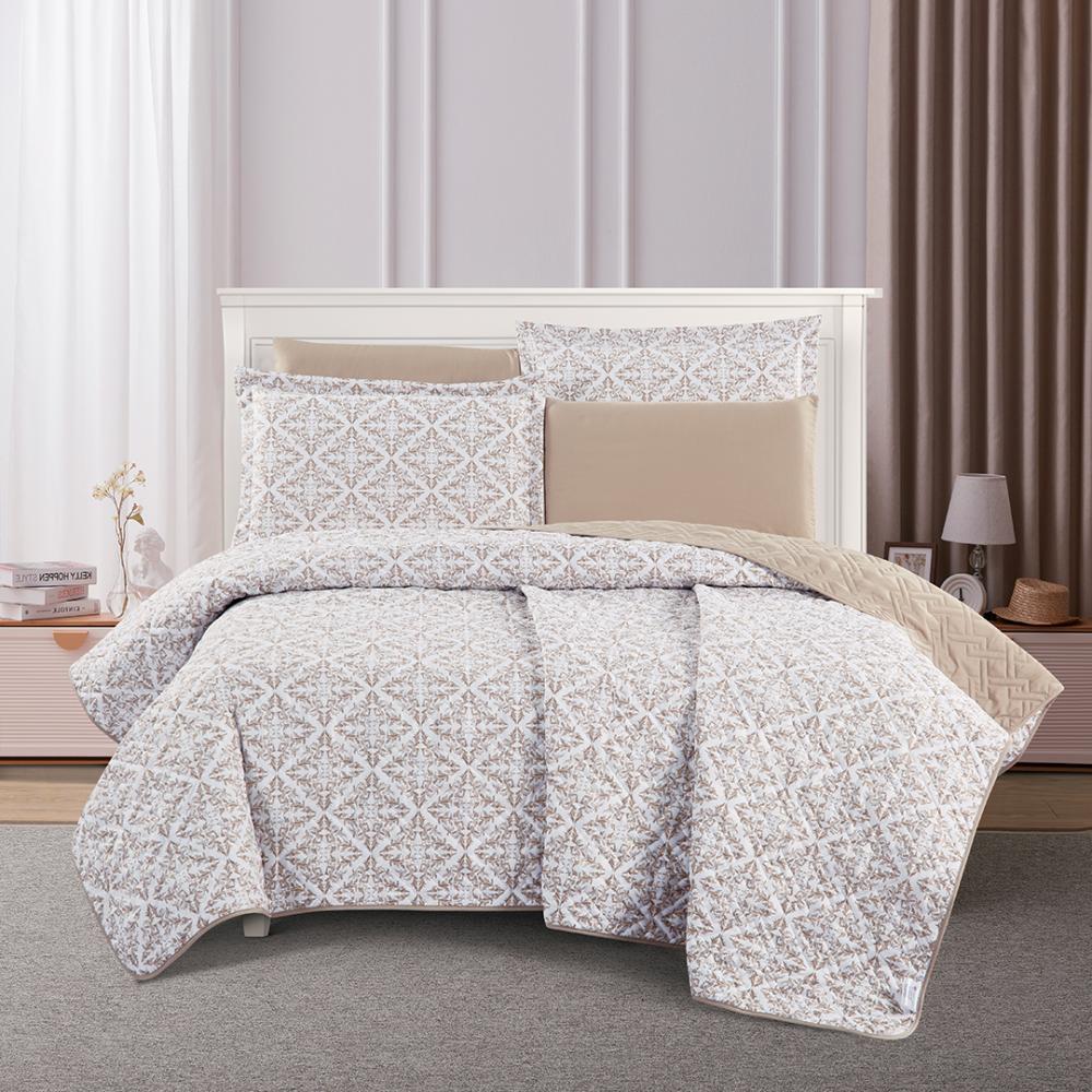 مفرش صيفي مزدوج حشوة مضغوطة 6 قطع - لونيا | نعومة مطلقة وأناقة بسيطة , مناسب للضيوف و الرحلات