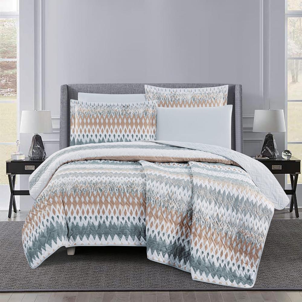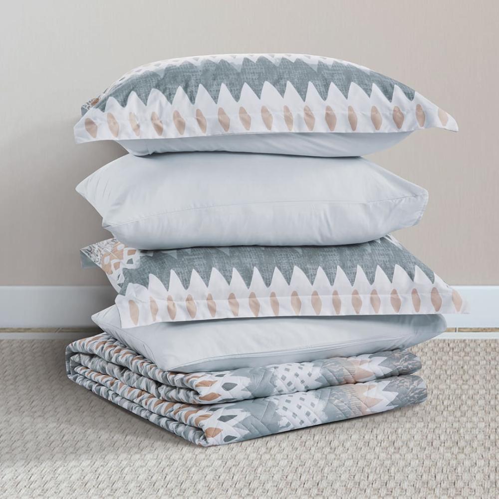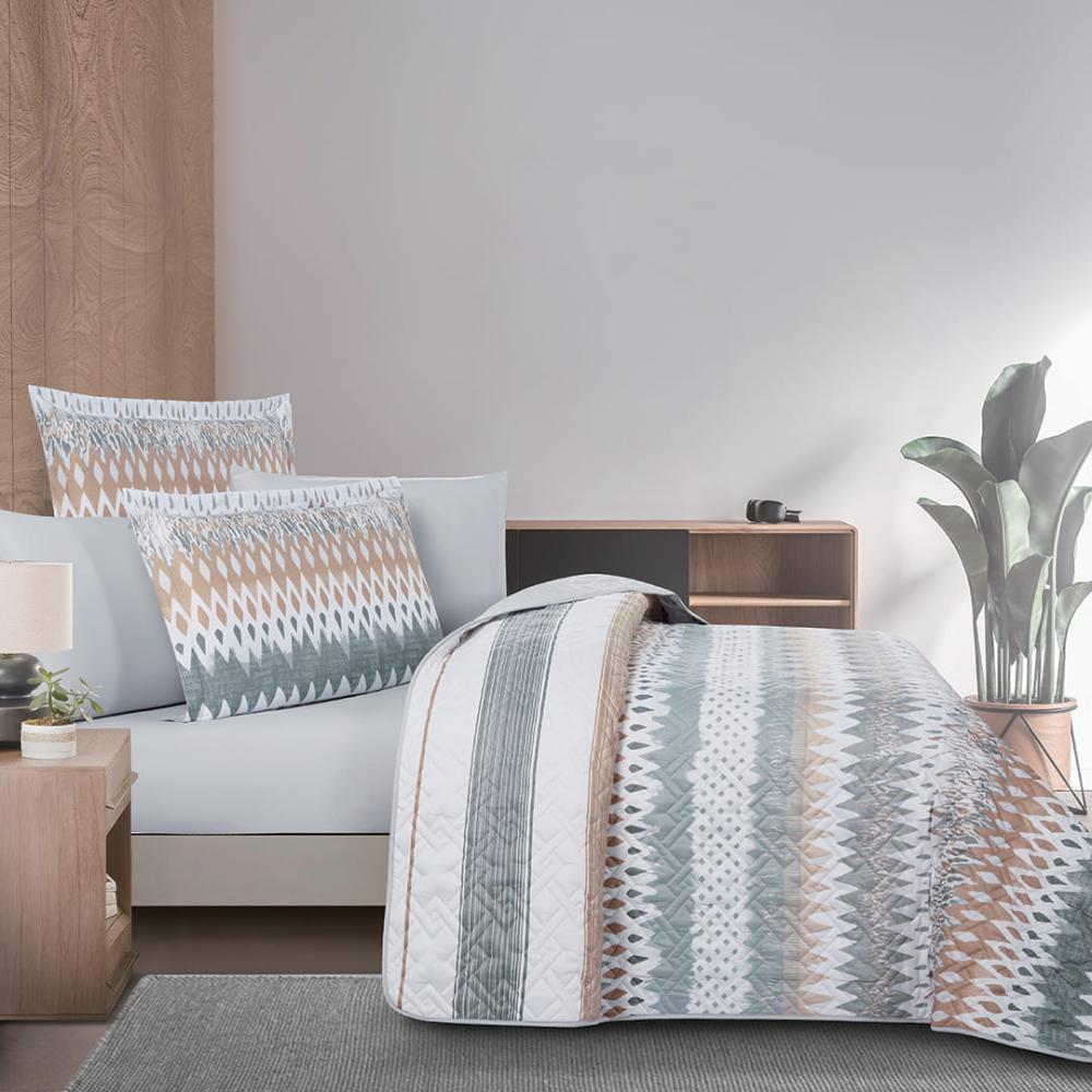 مفرش صيفي مزدوج حشوة مضغوطة 6 قطع - لونيا | نعومة مطلقة وأناقة بسيطة , مناسب للضيوف و الرحلات