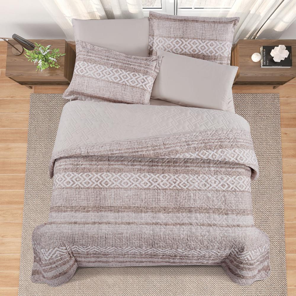 مفرش صيفي مزدوج حشوة مضغوطة 6 قطع - لونيا | نعومة مطلقة وأناقة بسيطة , مناسب للضيوف و الرحلات