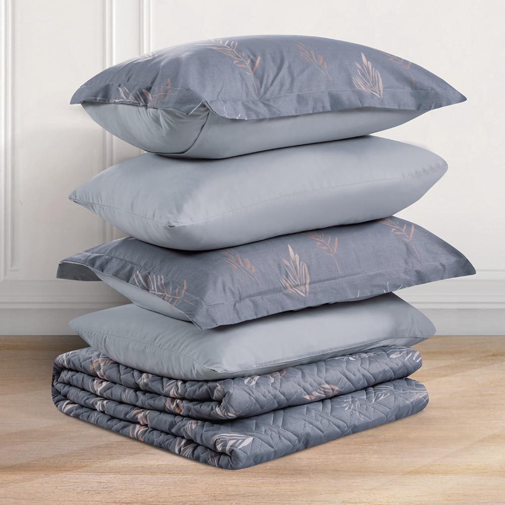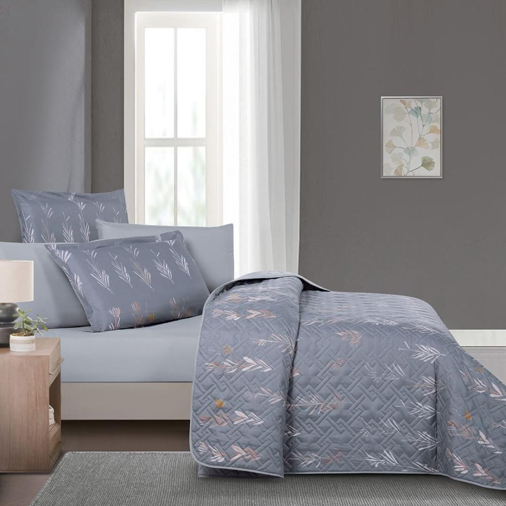 مفرش صيفي مزدوج حشوة مضغوطة 6 قطع - لونيا | نعومة مطلقة وأناقة بسيطة , مناسب للضيوف و الرحلات