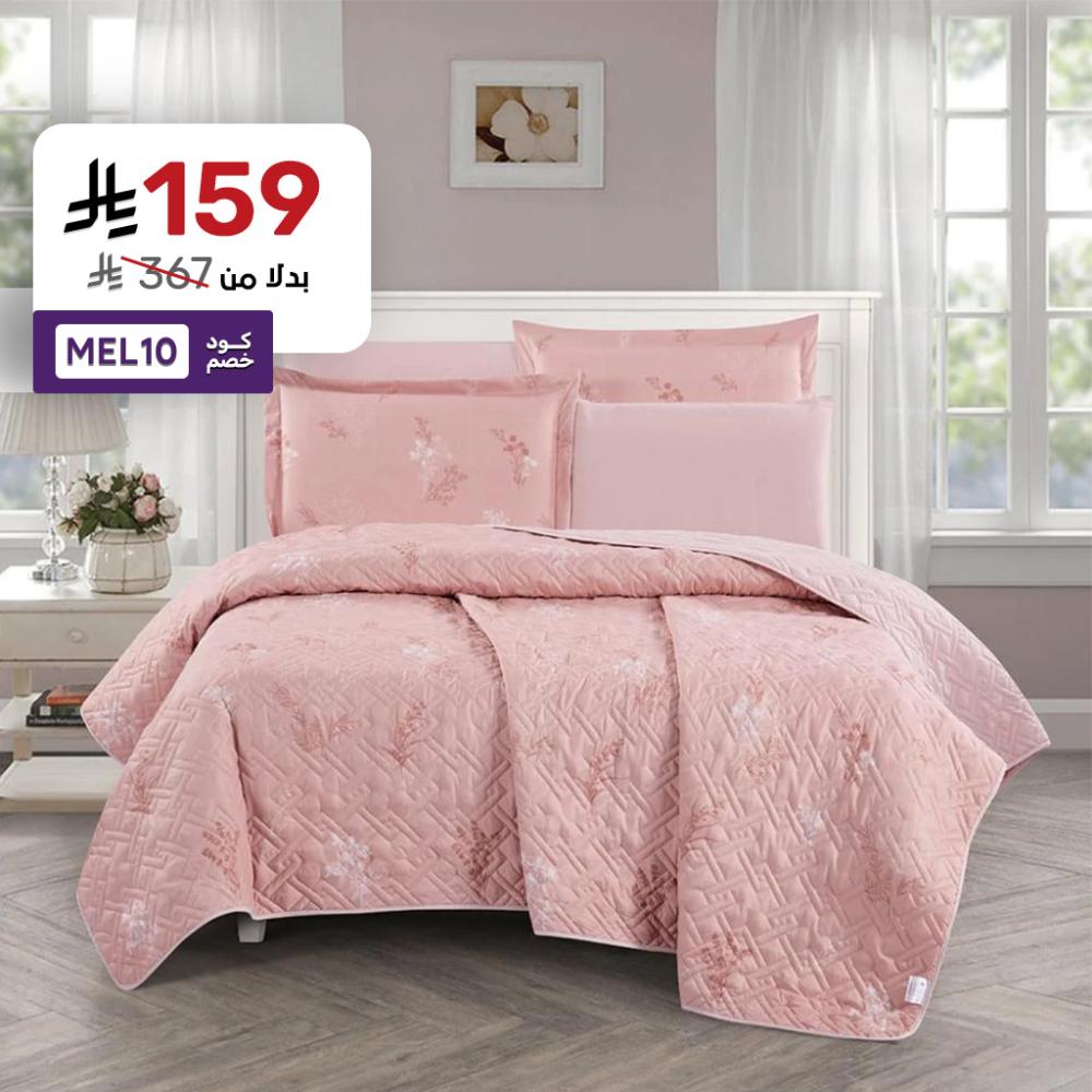 مفرش صيفي مزدوج حشوة مضغوطة 6 قطع - لونيا | نعومة مطلقة وأناقة بسيطة , مناسب للضيوف و الرحلات