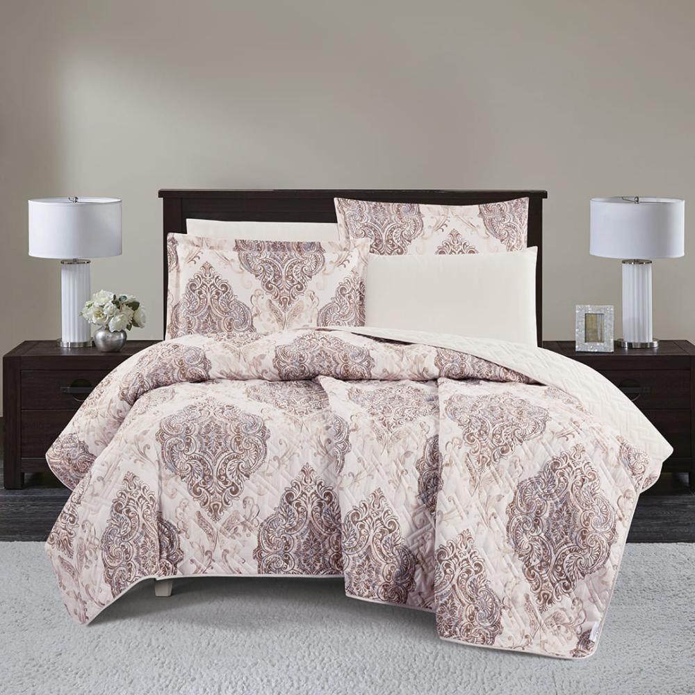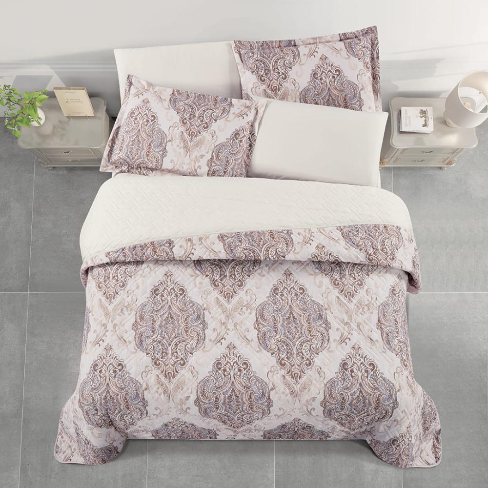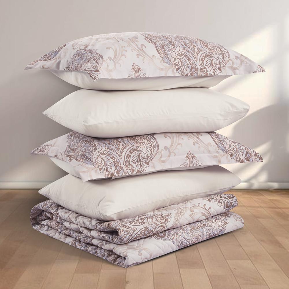 مفرش صيفي مزدوج حشوة مضغوطة 6 قطع - لونيا | نعومة مطلقة وأناقة بسيطة , مناسب للضيوف و الرحلات