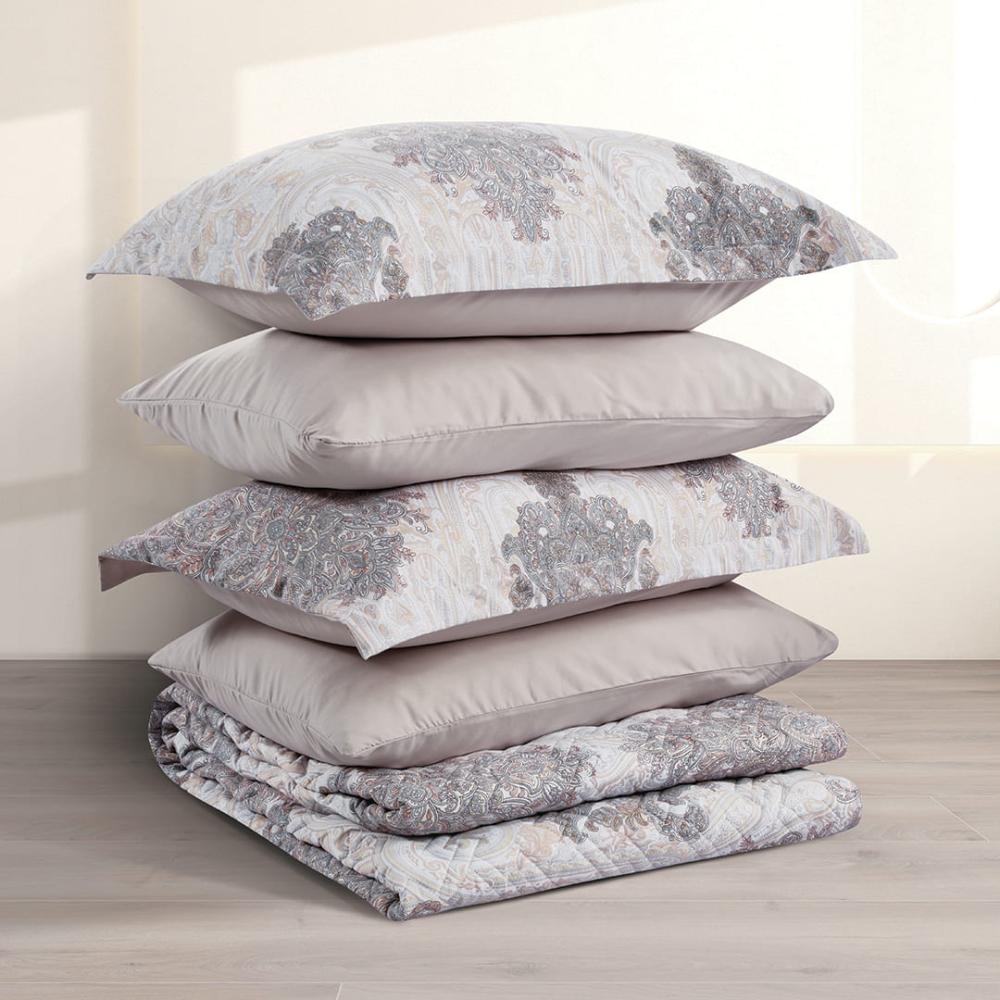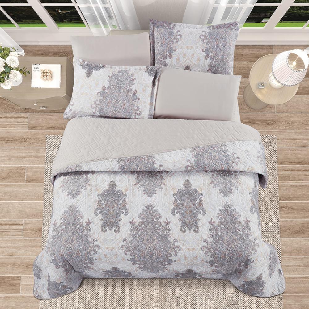 مفرش صيفي مزدوج حشوة مضغوطة 6 قطع - لونيا | نعومة مطلقة وأناقة بسيطة , مناسب للضيوف و الرحلات