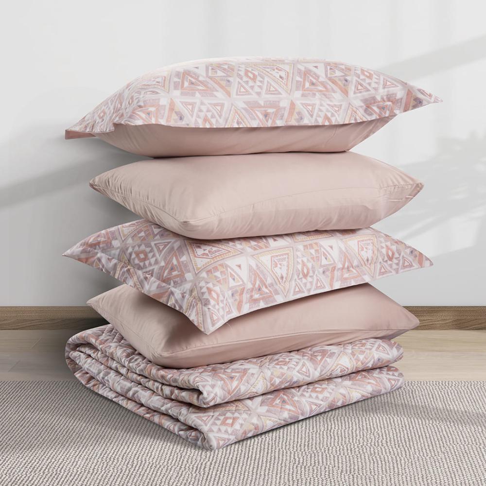 مفرش صيفي مزدوج حشوة مضغوطة 6 قطع - لونيا | نعومة مطلقة وأناقة بسيطة , مناسب للضيوف و الرحلات