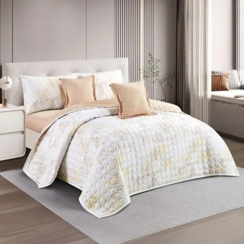مفرش صيفي مزدوج مضغوط 6 قطع - حشوة خفيفة - ليندا- لؤلؤي - بيج غامق