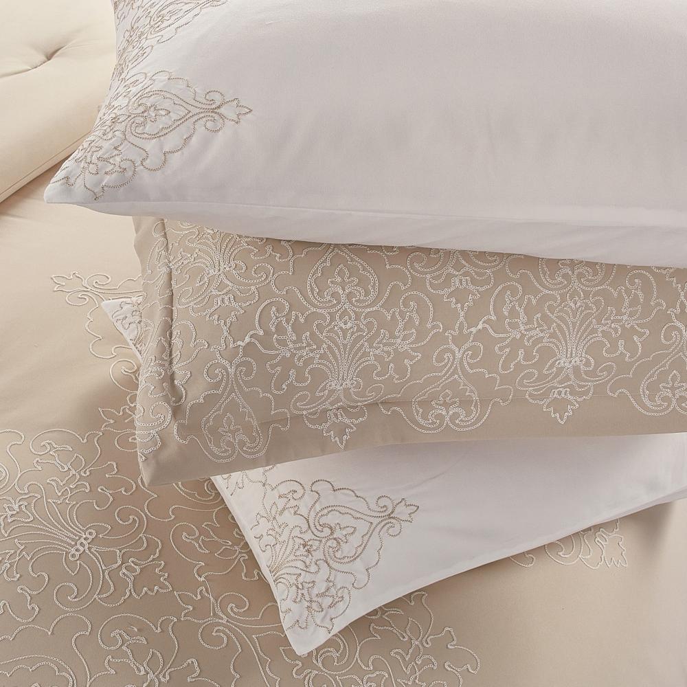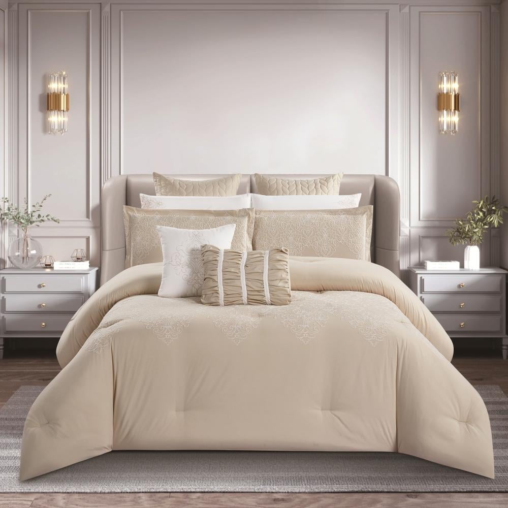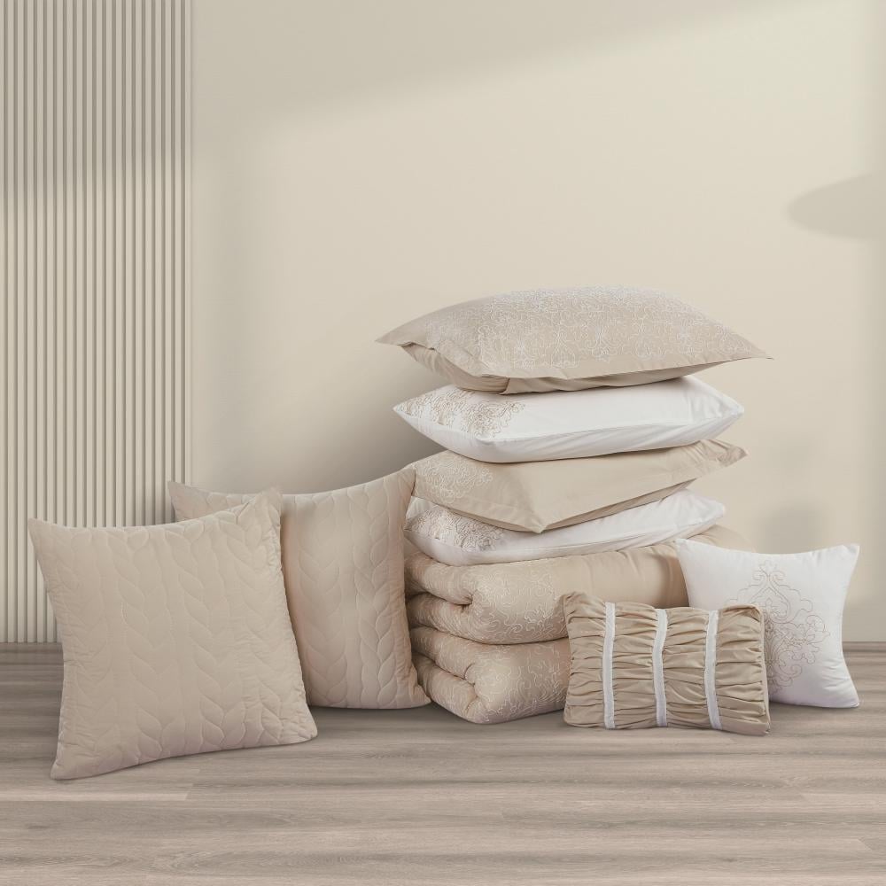 مفرش صيفي مزدوج مطرز فاخر 12 قطعة - اليجانزا - بيج