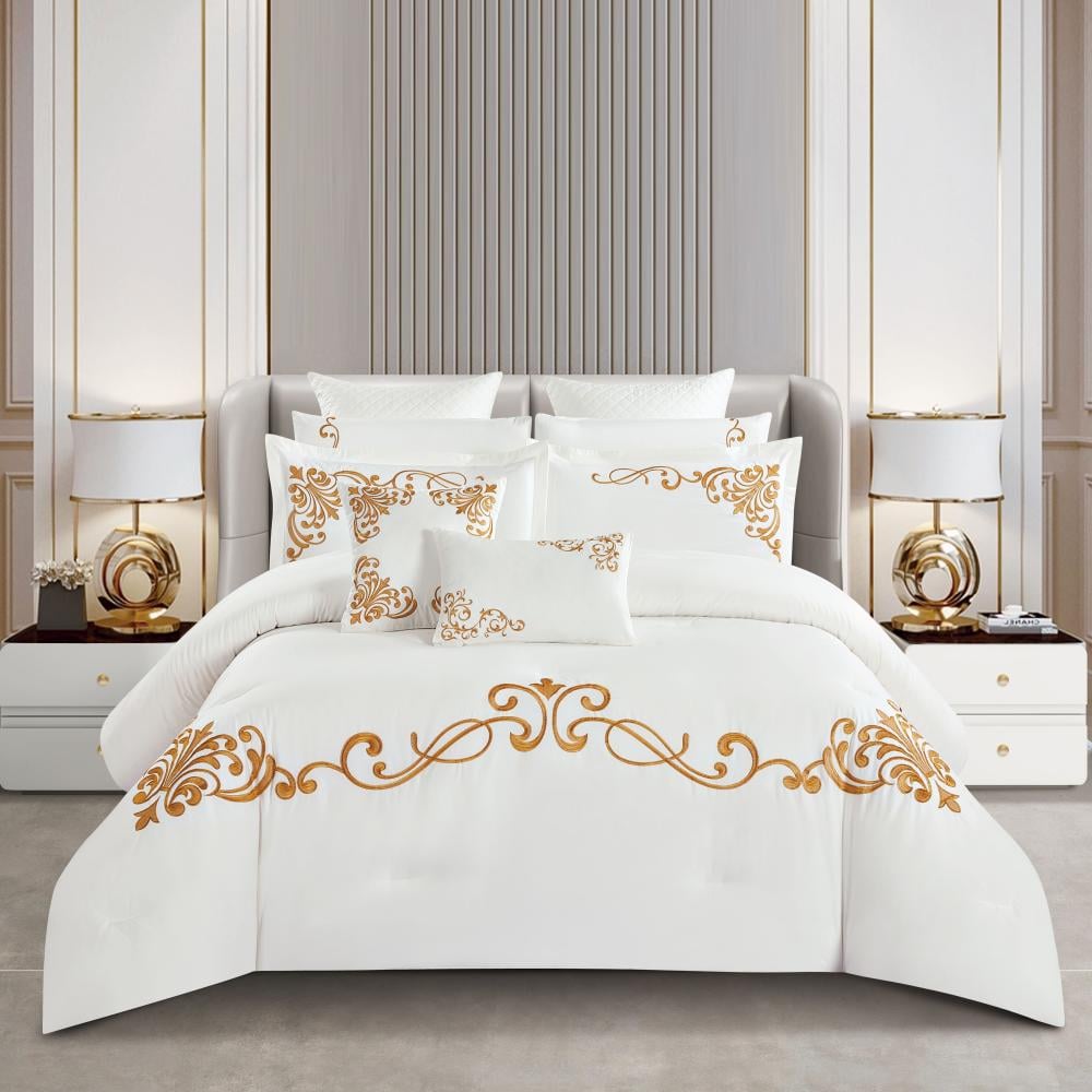 شراء مفرش سرير صيفي مزدوج مطرز فاخر 12 قطعة - مفارش ميلين