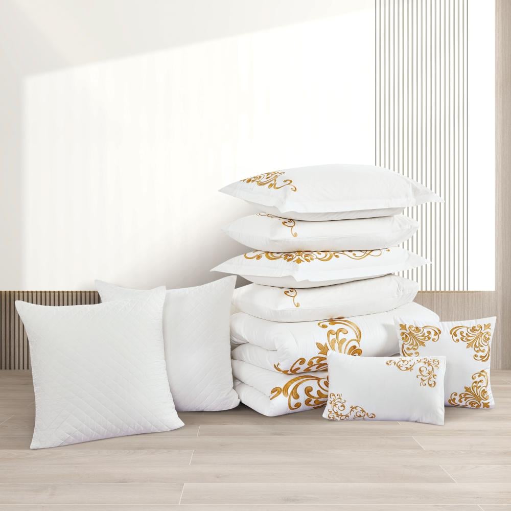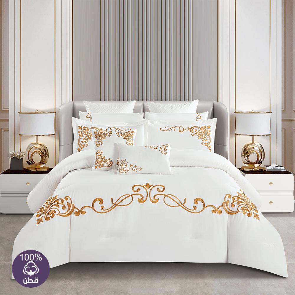 أفخم مفرش سرير صيفي مزدوج مطرز فاخر 12 قطعة - مفارش ميلين