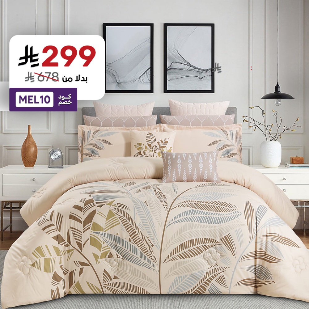 مفرش ريفيرا المميز بقماش مختار بعناية من ميلين يجمع بين النعومة و المتانة في آن واحد بحشوة ناعمة اختيرت بعناية يأتي مفرش ريفيرا بمجموعة مميزة من ١٠ قطع .