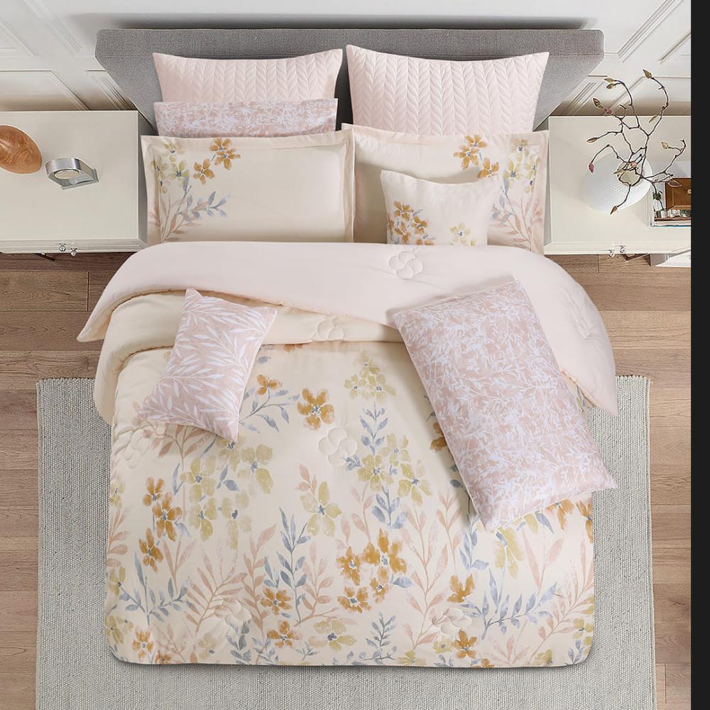 مفرش ريفيرا المميز بقماش مختار بعناية من ميلين يجمع بين النعومة و المتانة في آن واحد بحشوة ناعمة اختيرت بعناية يأتي مفرش ريفيرا بمجموعة مميزة من ١٠ قطع .