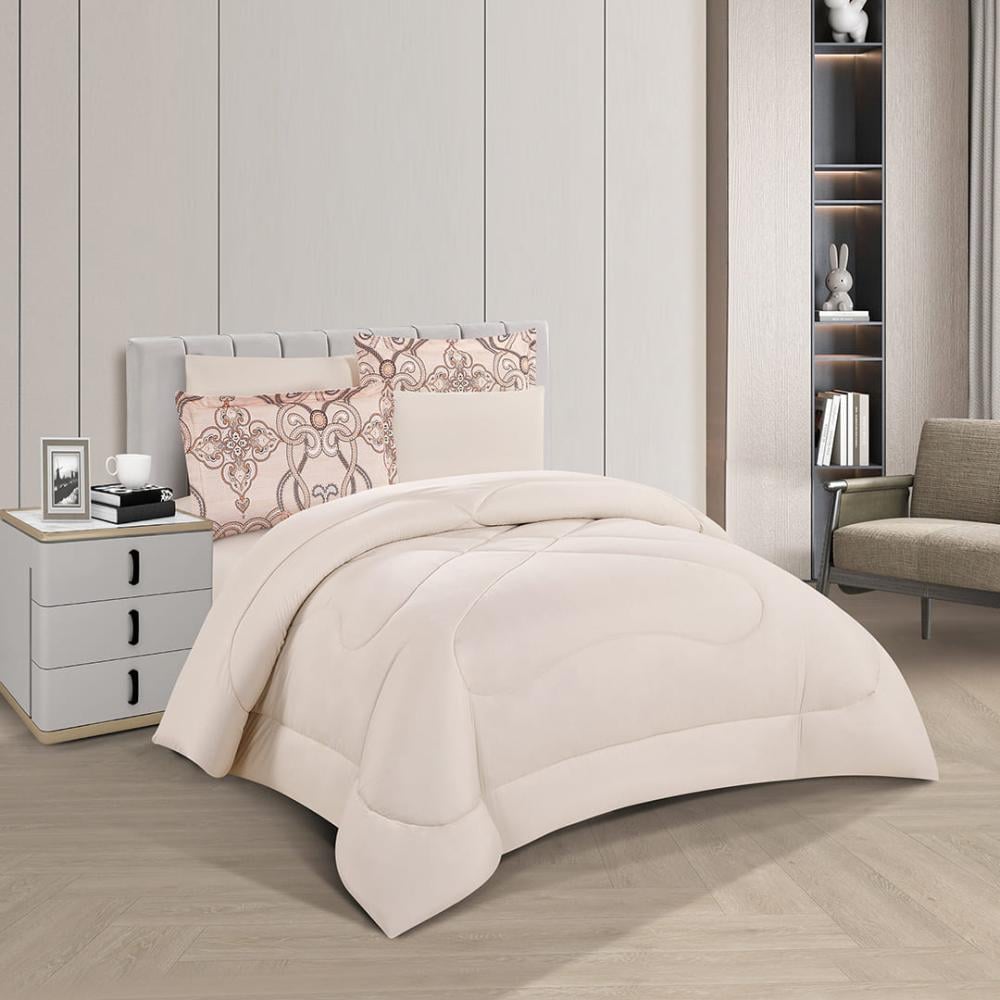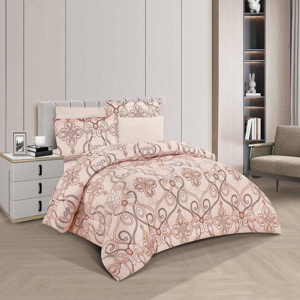 مفرش صيفي مزدوج 6 قطع - كاليندا - وردي - بيج