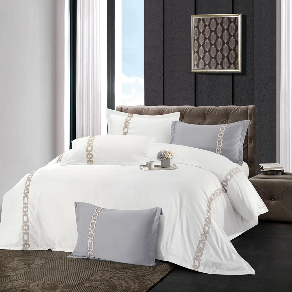 مفرش صيفي مفرد ونص مطرز بنظام فندقي 5 قطع - ايلارا - أبيض