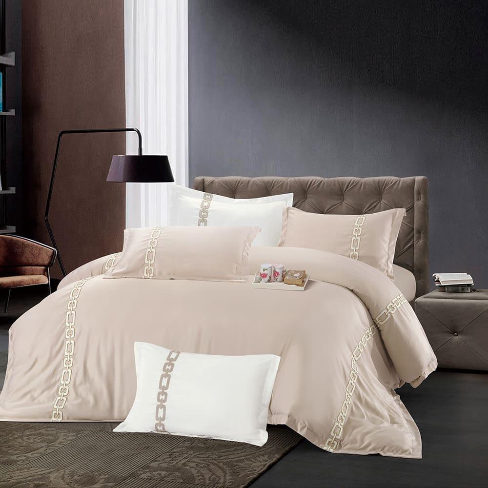 مفرش صيفي مفرد ونص مطرز بنظام فندقي 5 قطع - ايلارا - بيج غامق