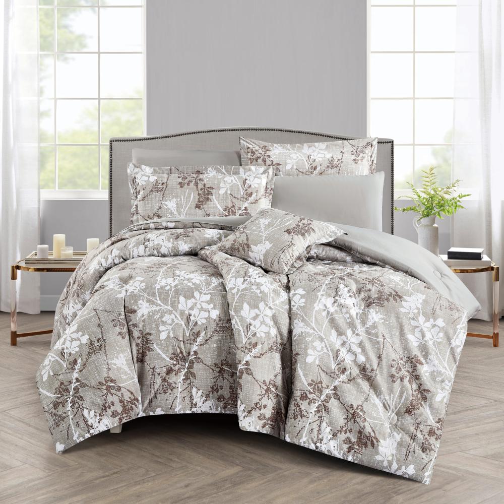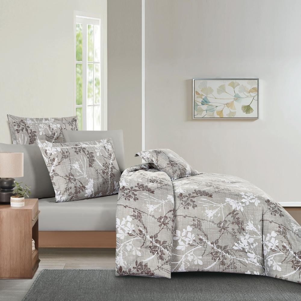 مفرش صيفي مفرد ونص وجهين 4 قطع - سيلون - بيج غامق - رمادي