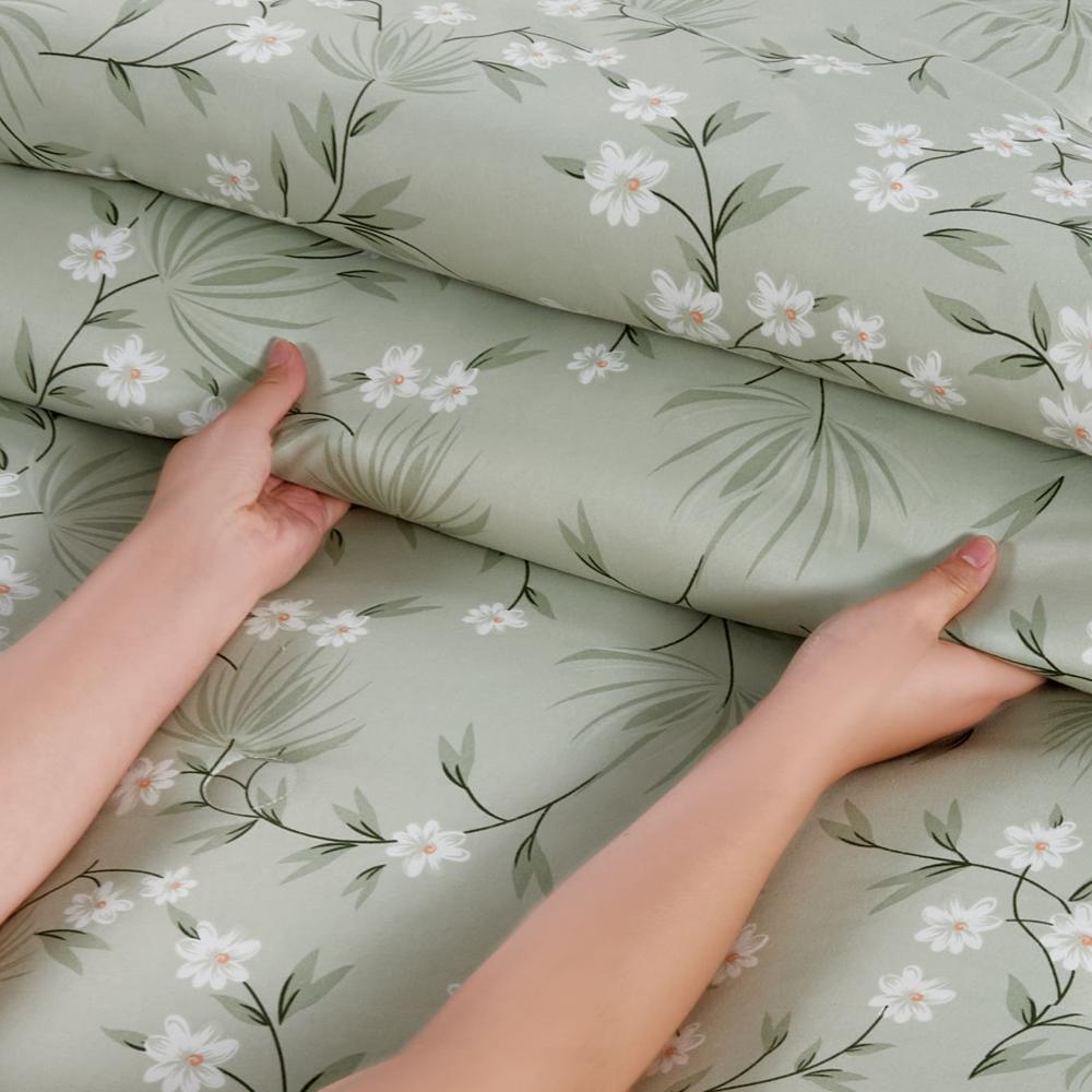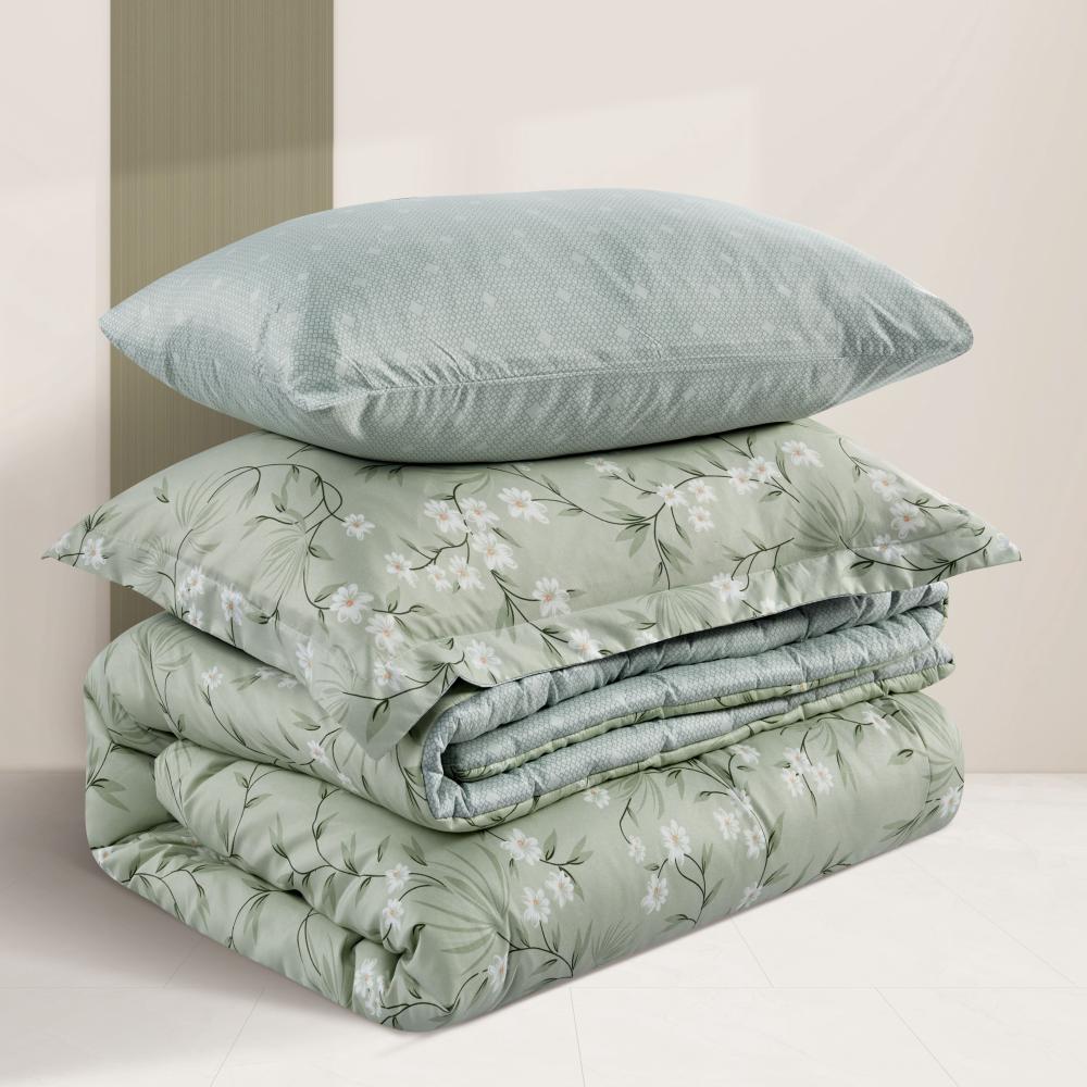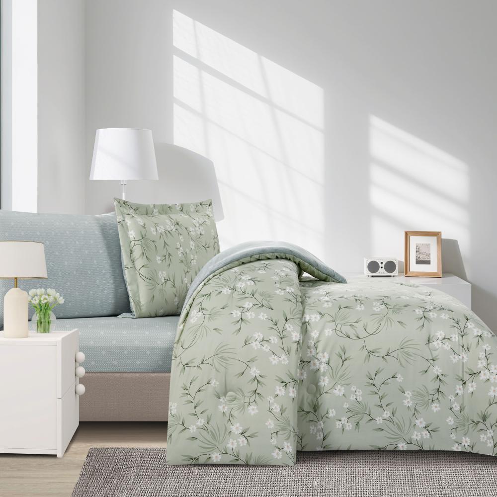 مفرش صيفي مفرد ونص 4 قطع - اديلين - اخضر فاتح - رصاصي