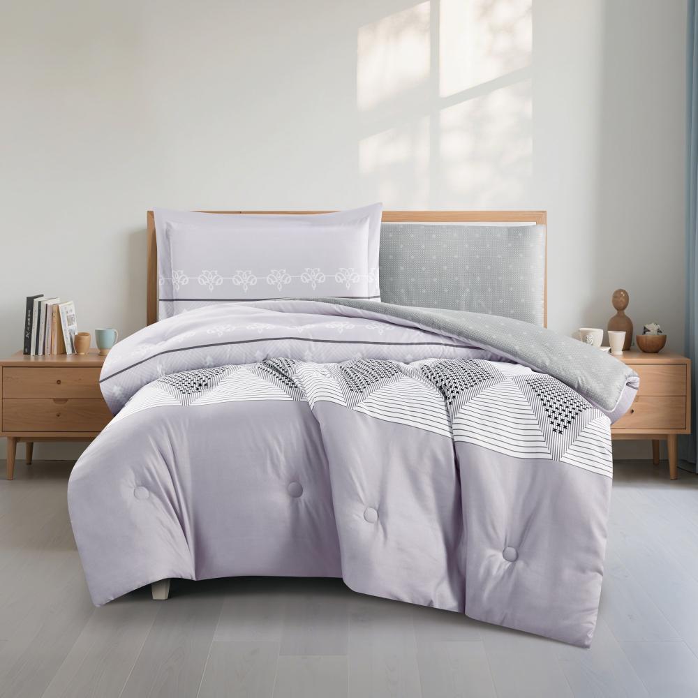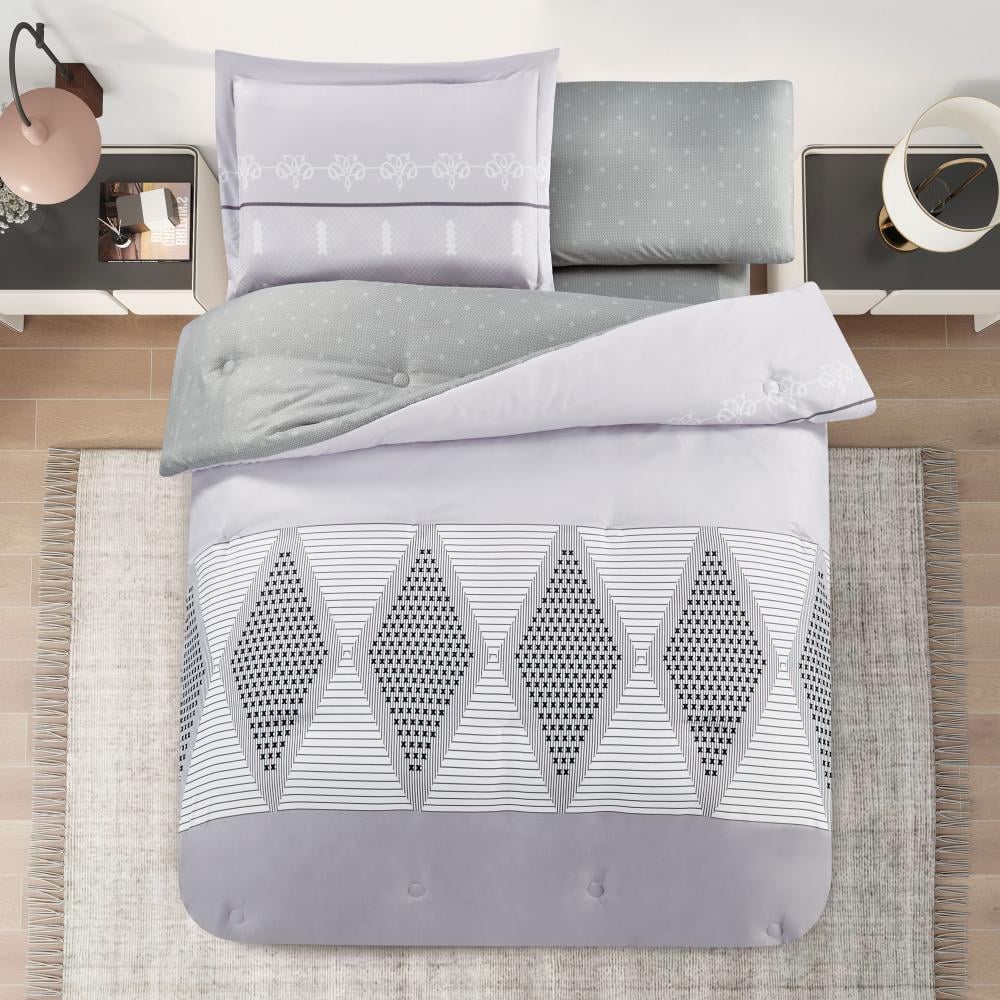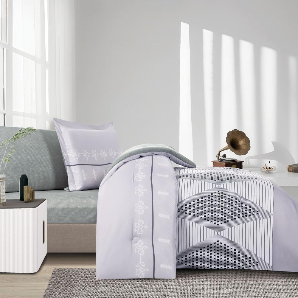 مفرش صيفي مفرد ونص 4 قطع - اديلين - اوف وايت - رمادي ثلجي - رمادي