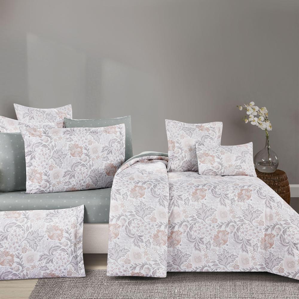 مفرش صيفي مفرد ونص 4 قطع - اديلين - كريمي - رمادي