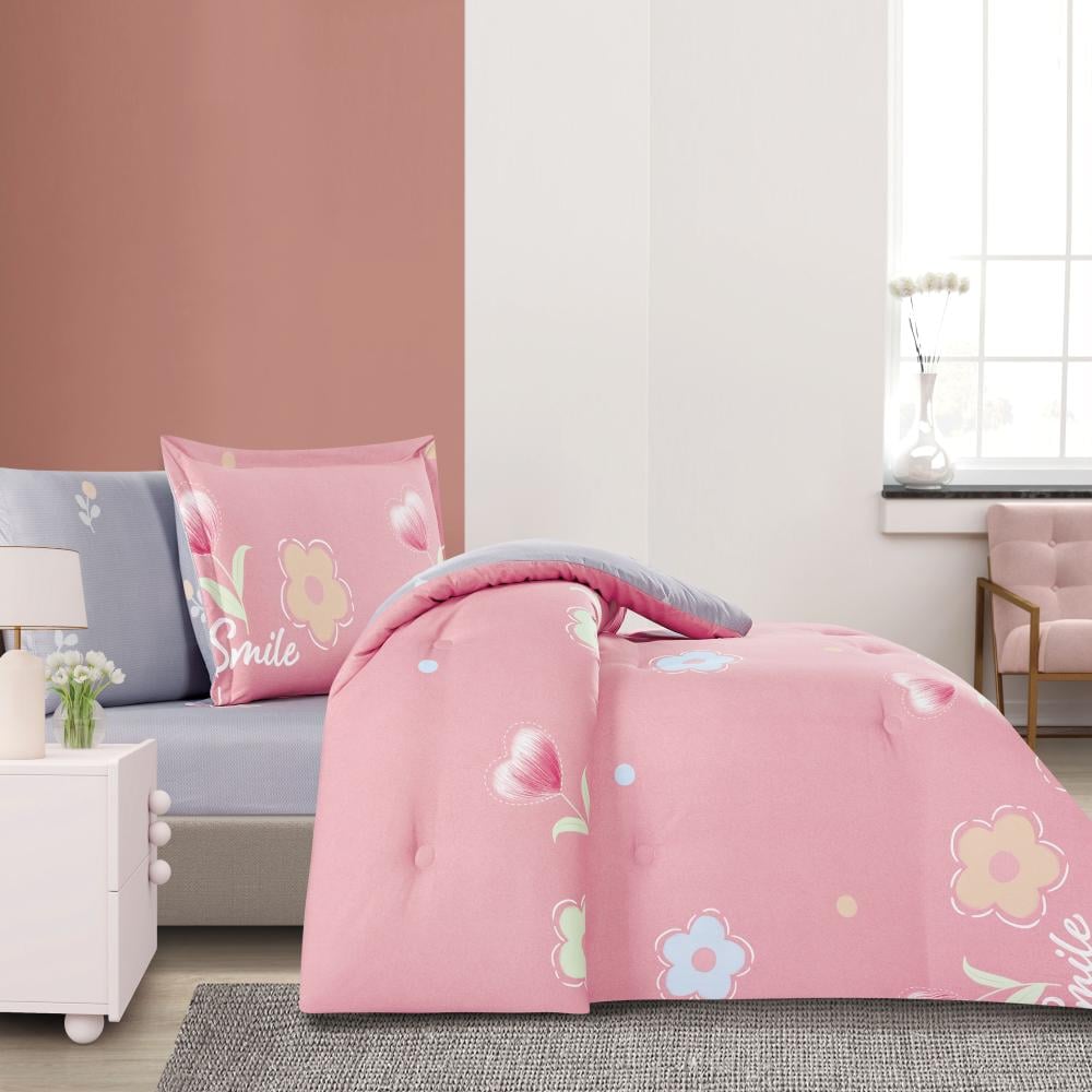 مفرش صيفي مفرد ونص 4 قطع - اليساندرا - وردي - رمادي