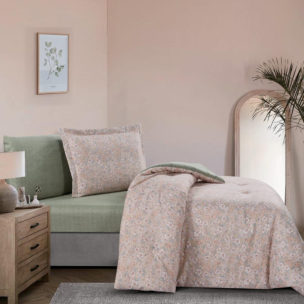 مفرش صيفي مفرد ونص 4 قطع - ليتون -بيج - اخضر