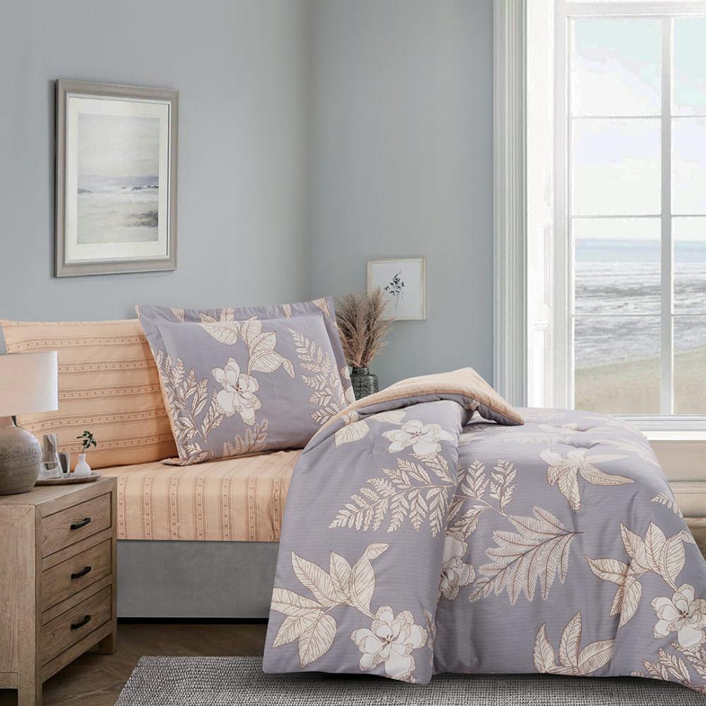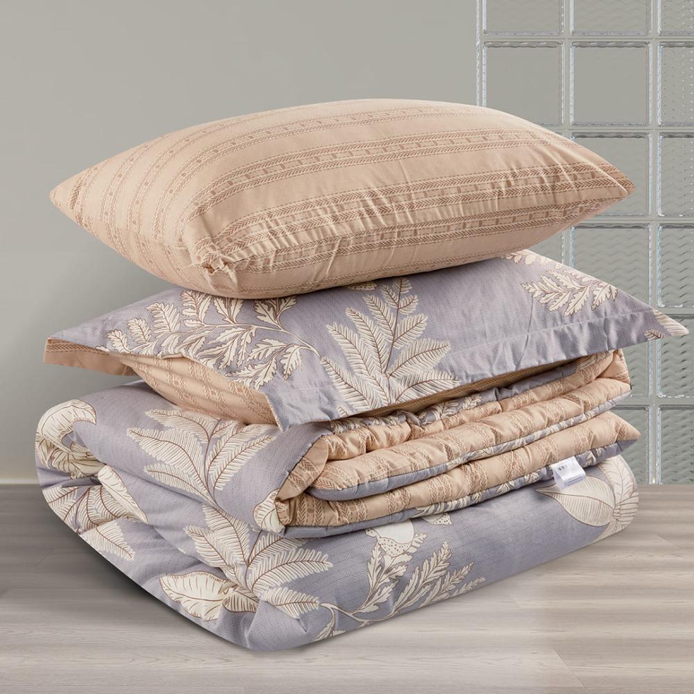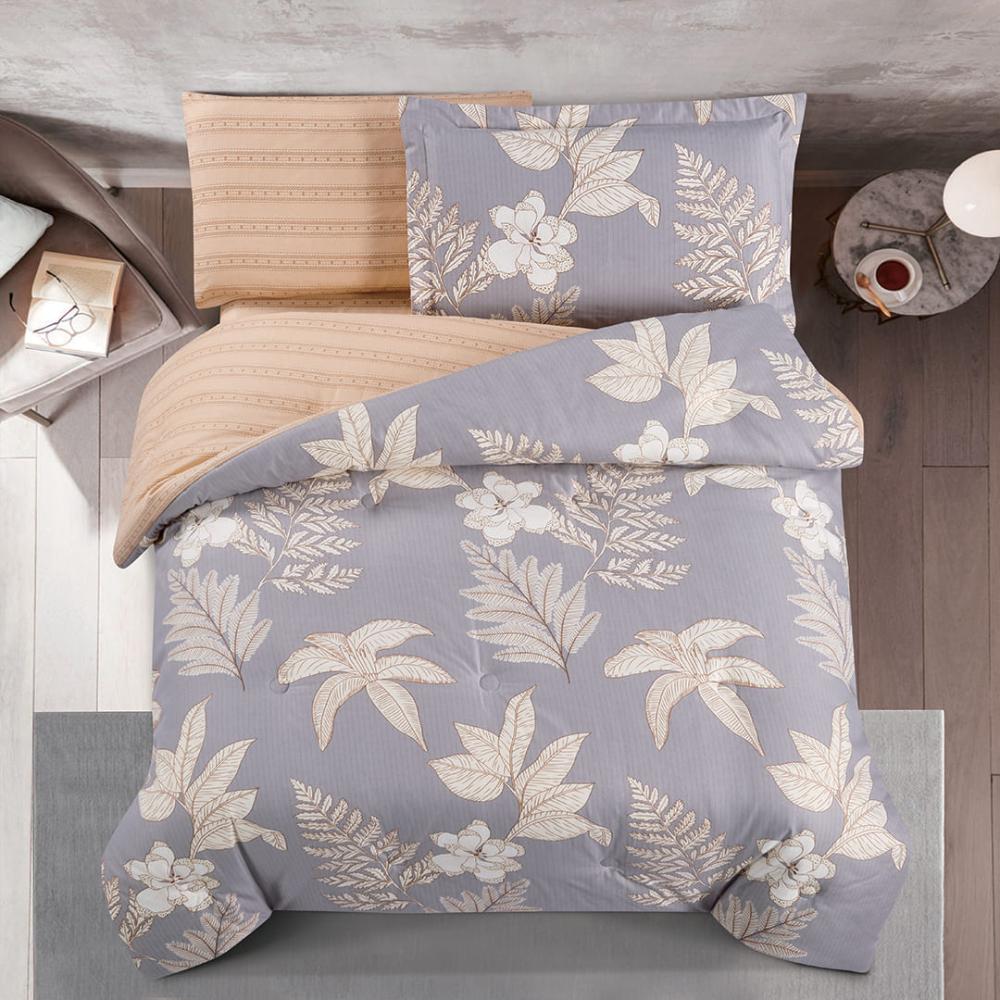 مفرش صيفي مفرد ونص 4 قطع - ليتون -رمادي - بيج