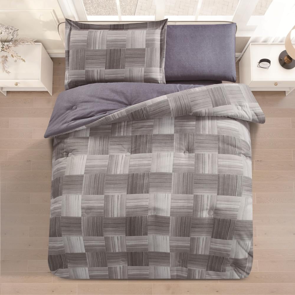 مفرش صيفي مفرد ونص 4 قطع - ليتون -رمادي فاتح - رمادي غامق
