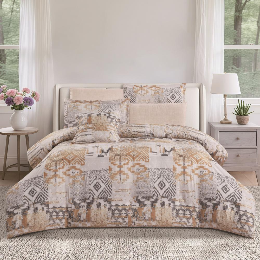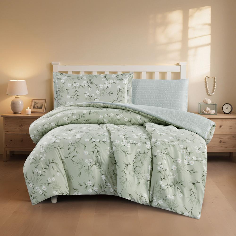 حوّل غرفة نومك إلى واحة من الراحة والجمال مع المفرش الصيفي الأنيق . صُمم بخامة ناعمة وخفيفة تمنحك برودة وانتعاش طوال الليل، مع تفاصيل أنيقة وألوان راقية تضيف لمسة سحرية لسريرك.