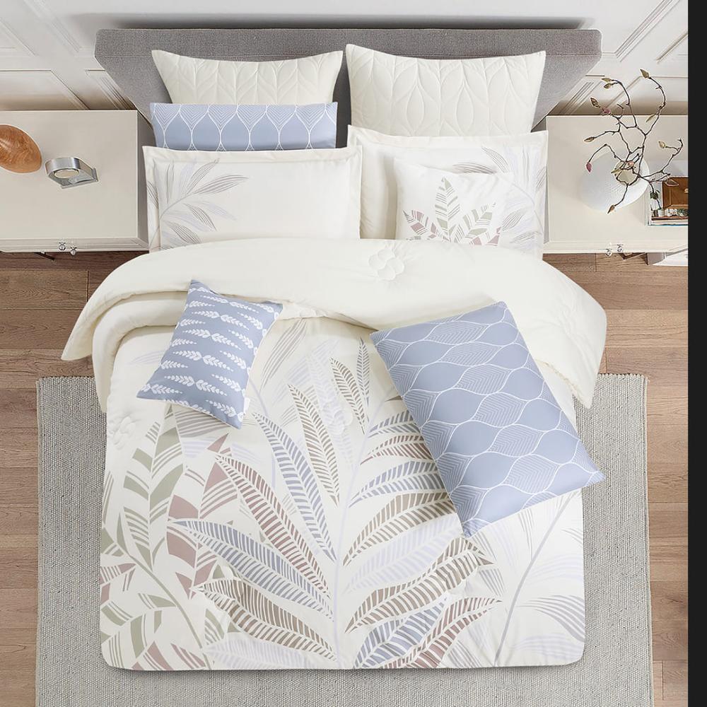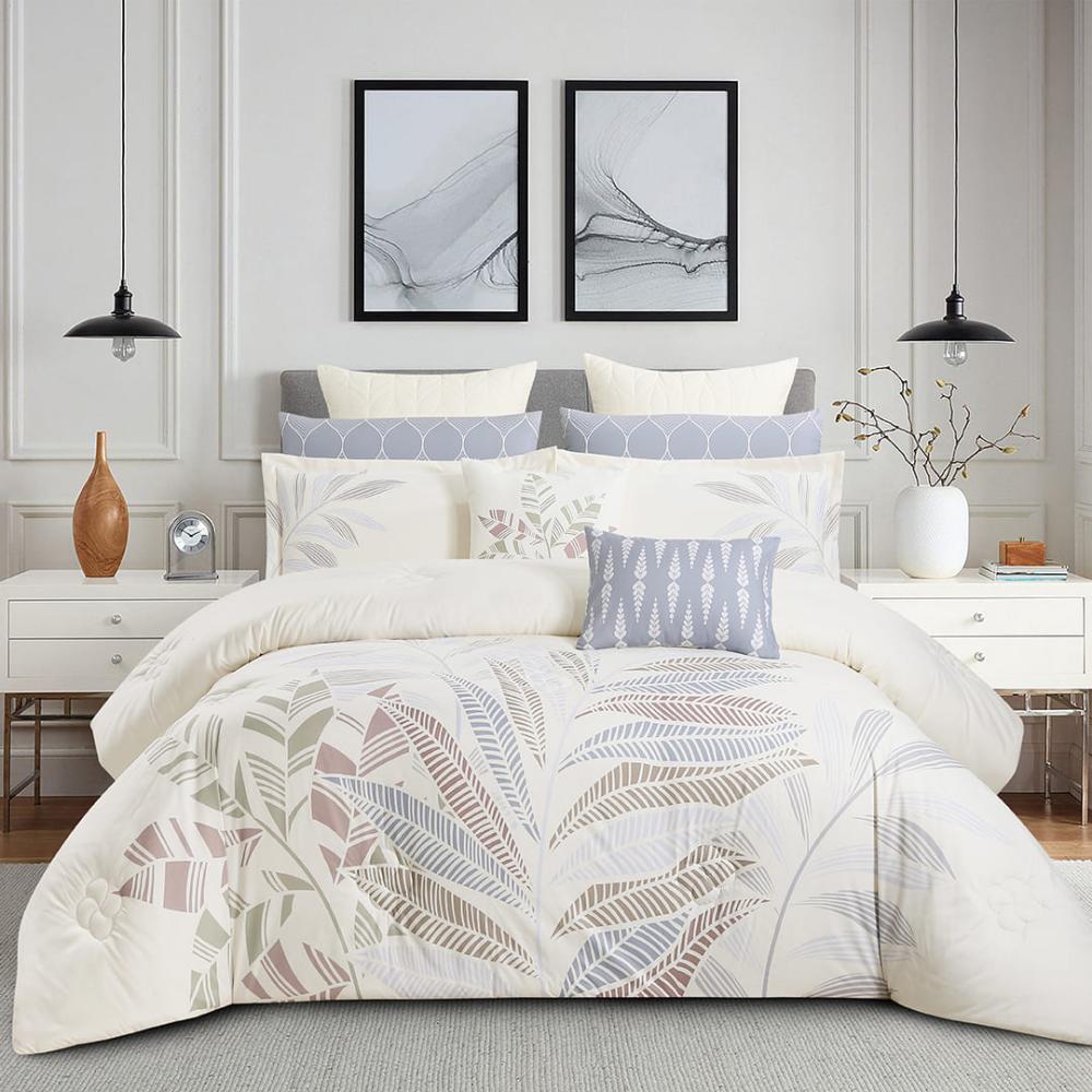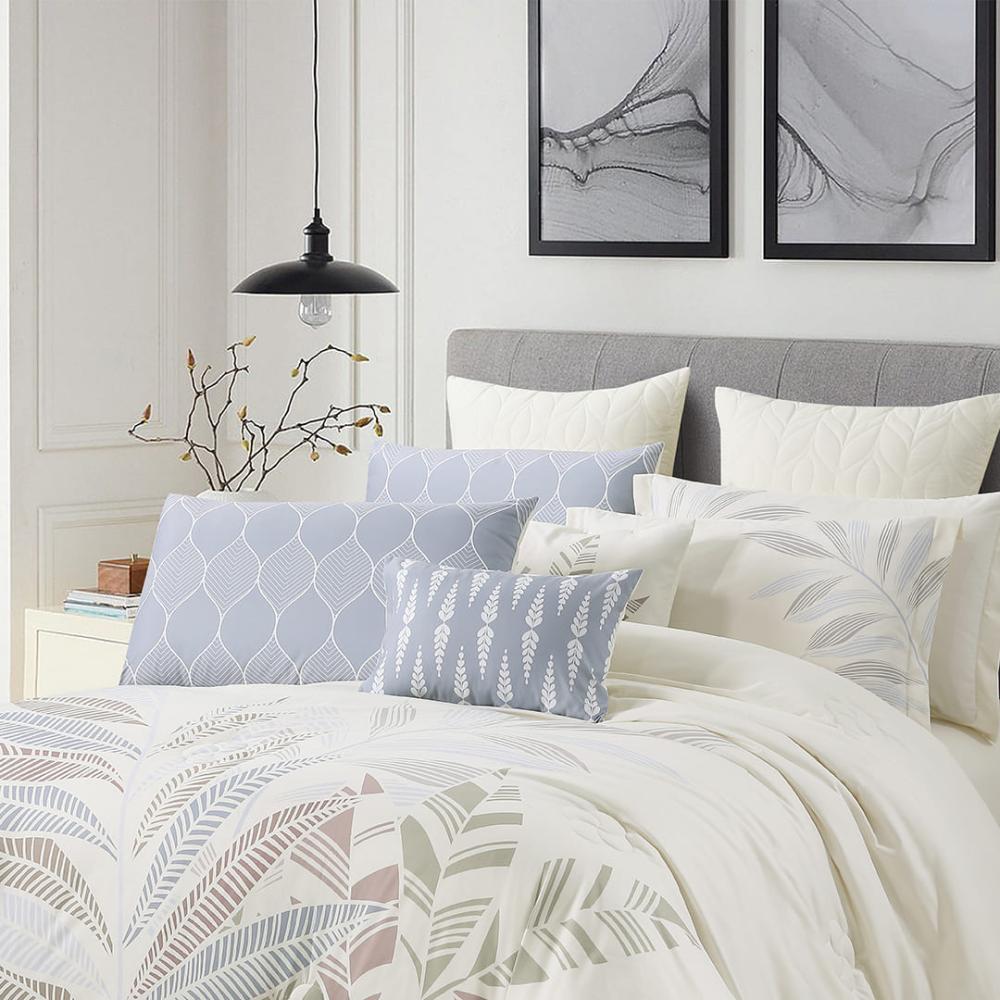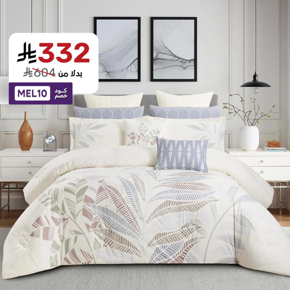 استمتعي بإطلالة مبهرة وأناقة لا تُضاهى مع مفرش "كلاريس" الصيفي. طقم فاخر مكوّن من 12 قطعة، صُمم ليمنح سريرك مظهراً ملكياً متكاملاً وخامة صيفية ناعمة توفّر لكِ الراحة والانتعاش في كل ليلة.