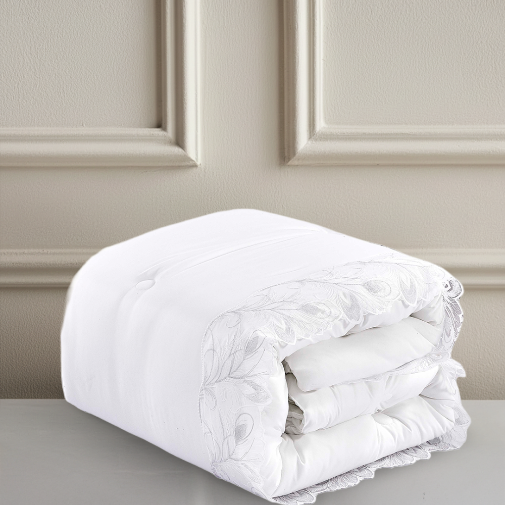 امنحي غرفة نومك لمسة فريدة من الفخامة مع مفرش يولينا العرائسي، بتصميمه الأنيق وتفاصيله الراقية التي تجمع بين النعومة والرقي. يتميز بتطريز فاخر ودانتيل ناعم يضفي جمالاً ملكيًا على السرير.