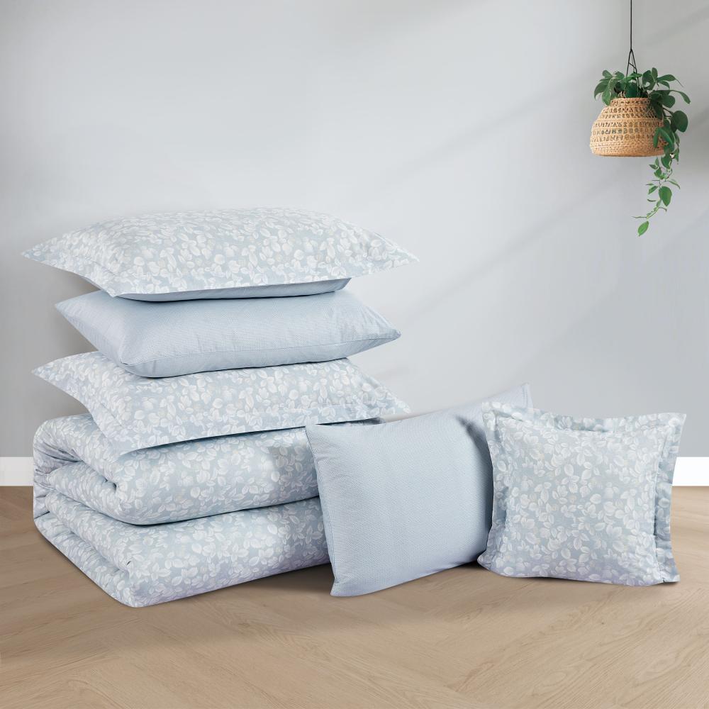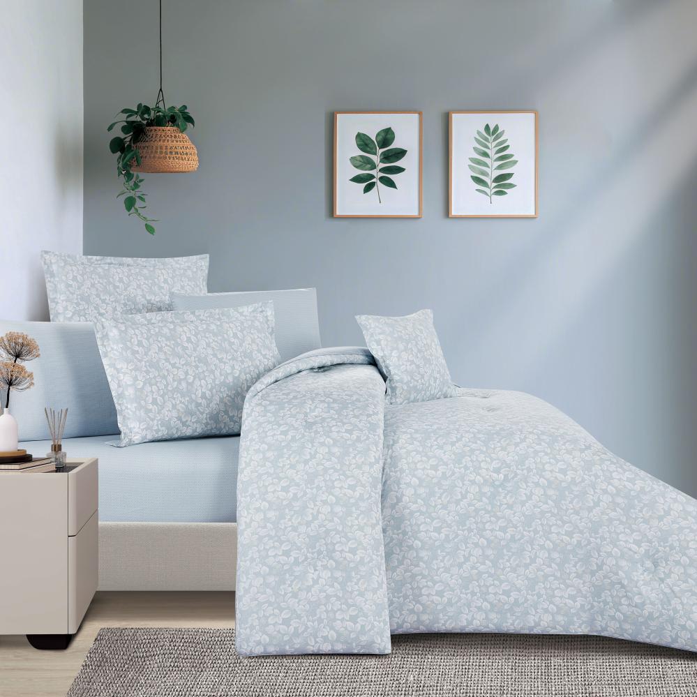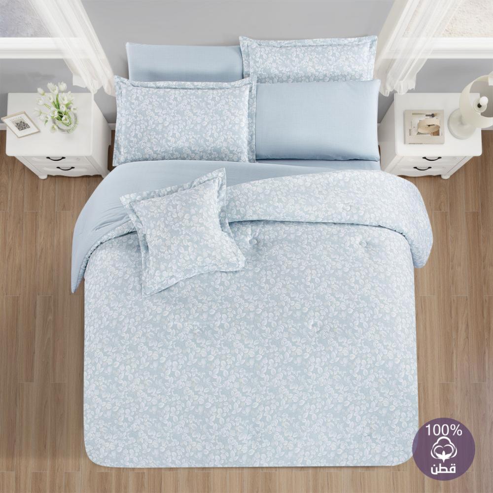 مفرش قطن صيفي مزدوج 8 قطع - زافيرا - ازرق ضبابي - رصاصي