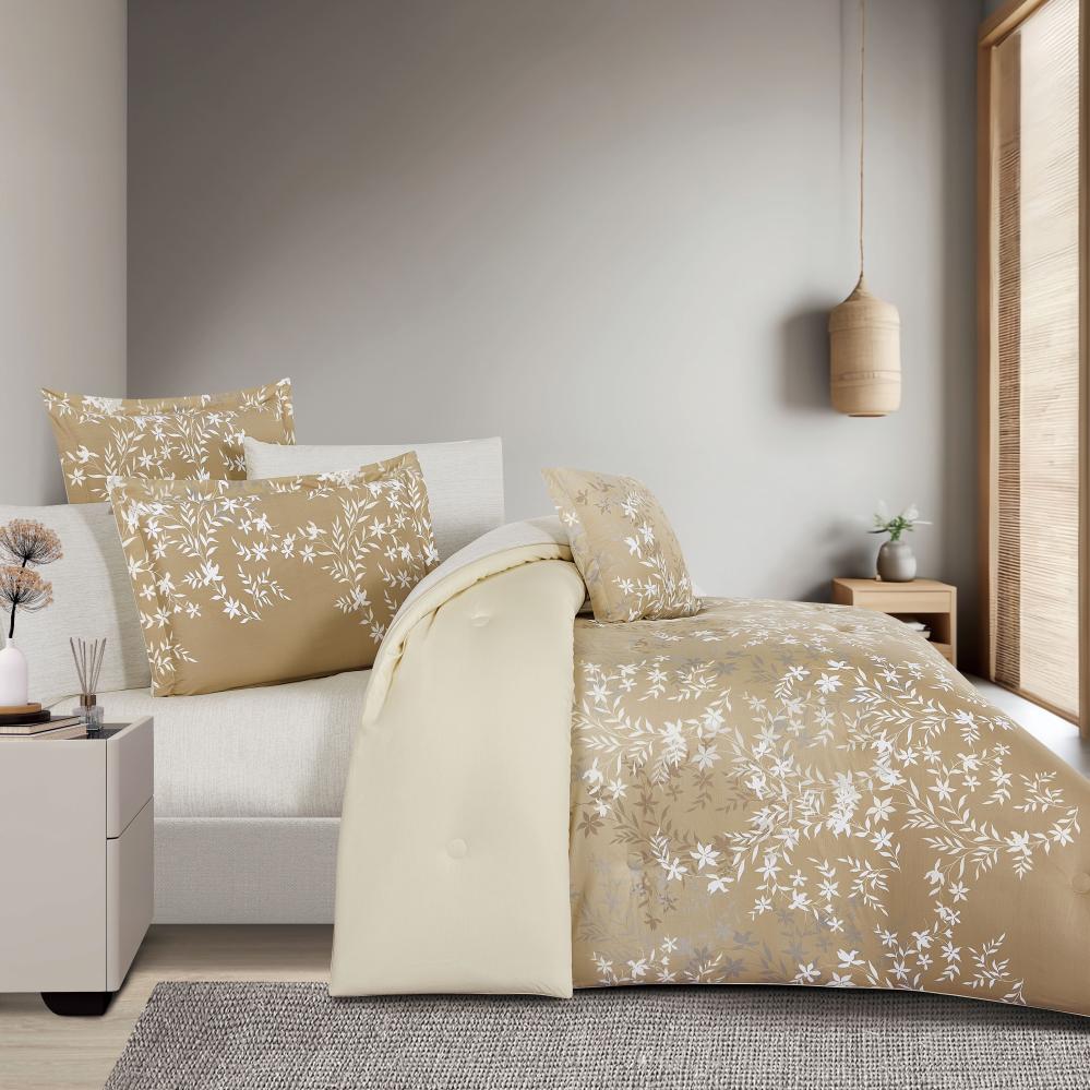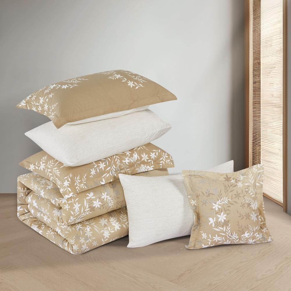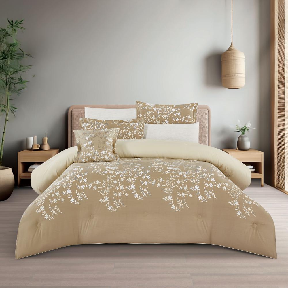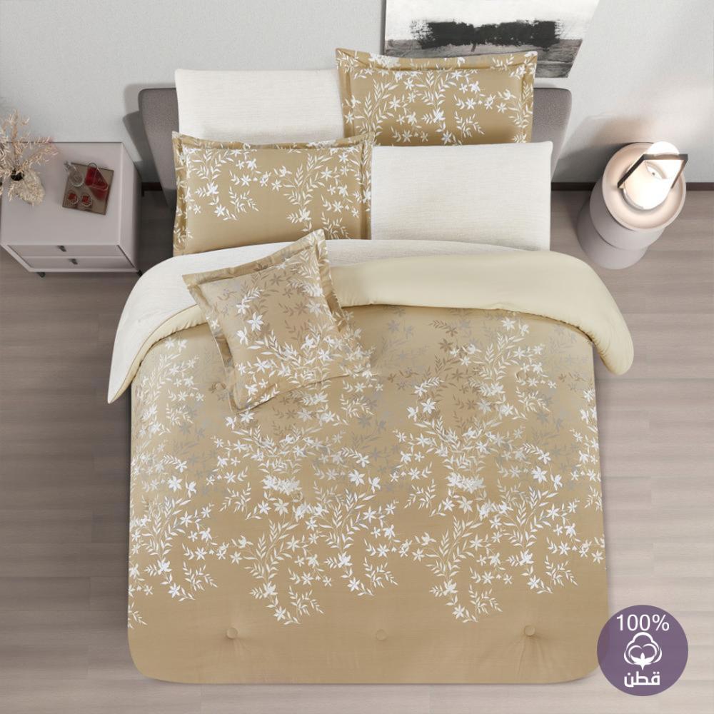 مفرش قطن صيفي مزدوج 8 قطع - زافيرا - بيج غامق - بيج فاتح - سكري