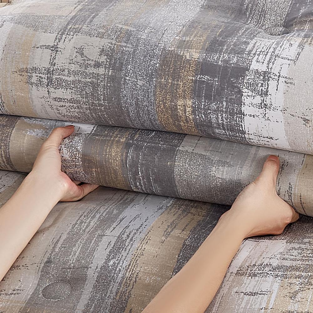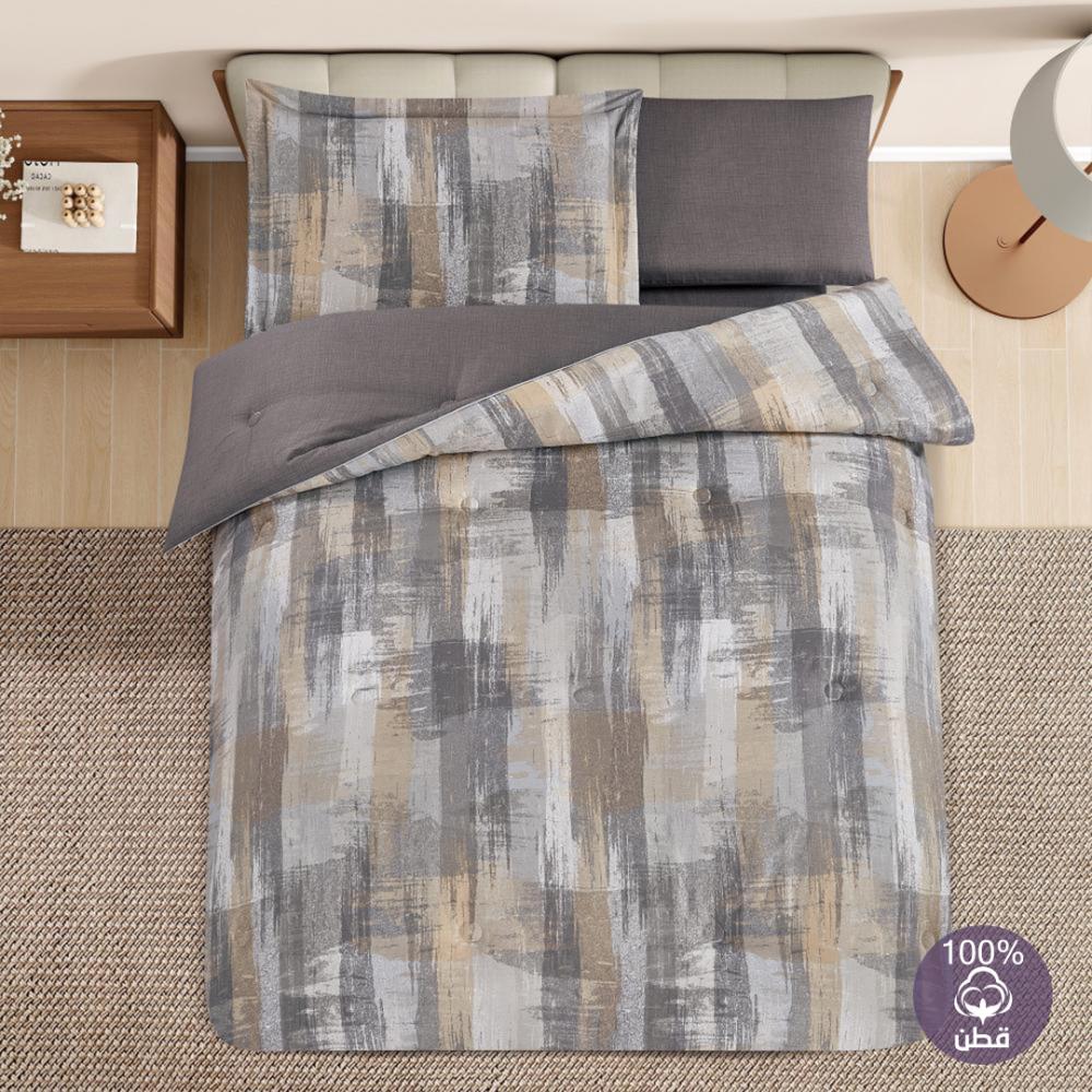 يأتي المفرش بتدرجات ألوان أنيقة تمنح الغرفة جوًا مريحًا ، مع حشوة مريحة تجعله مثالياً للاستخدام اليومي.