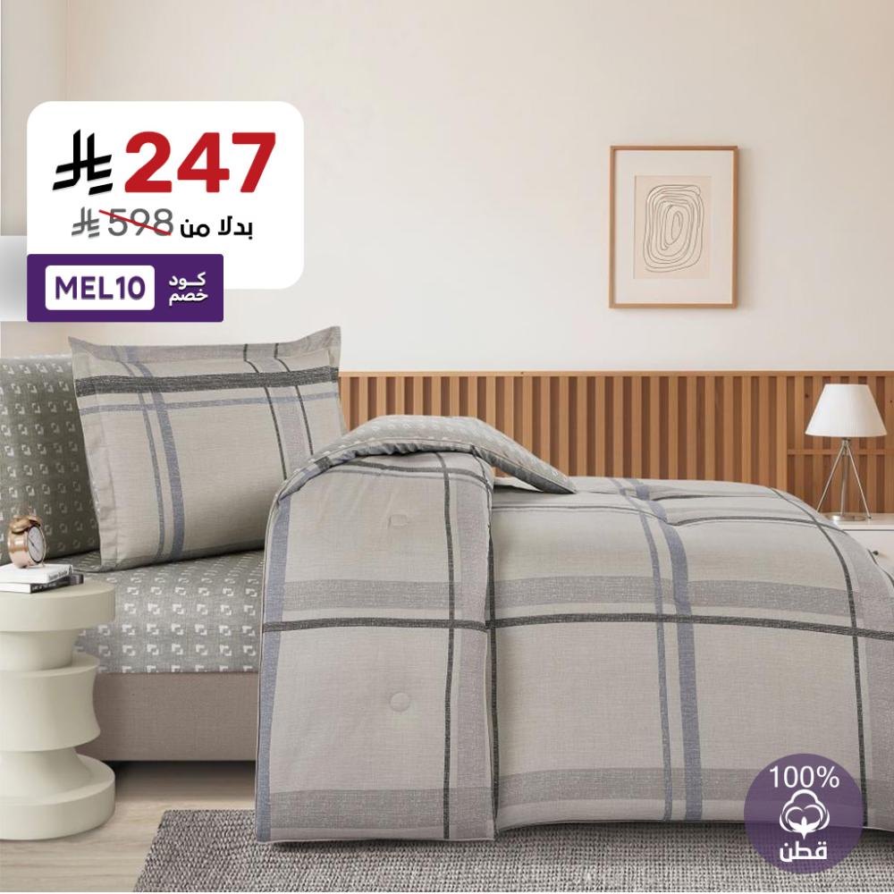 مفرش قطن صيفي مفرد ونص 4 قطع – نولين | نعومة القطن لراحة يومية