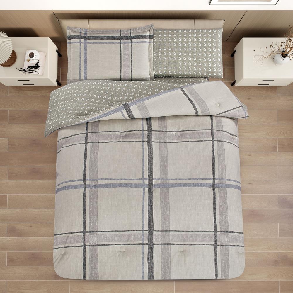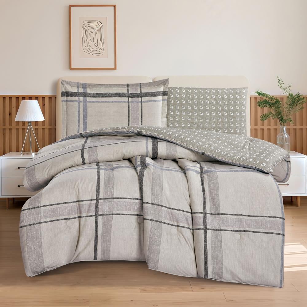 مفرش قطن صيفي مفرد ونص ٤ قطع - نولين -بيج - رمادي فاتح